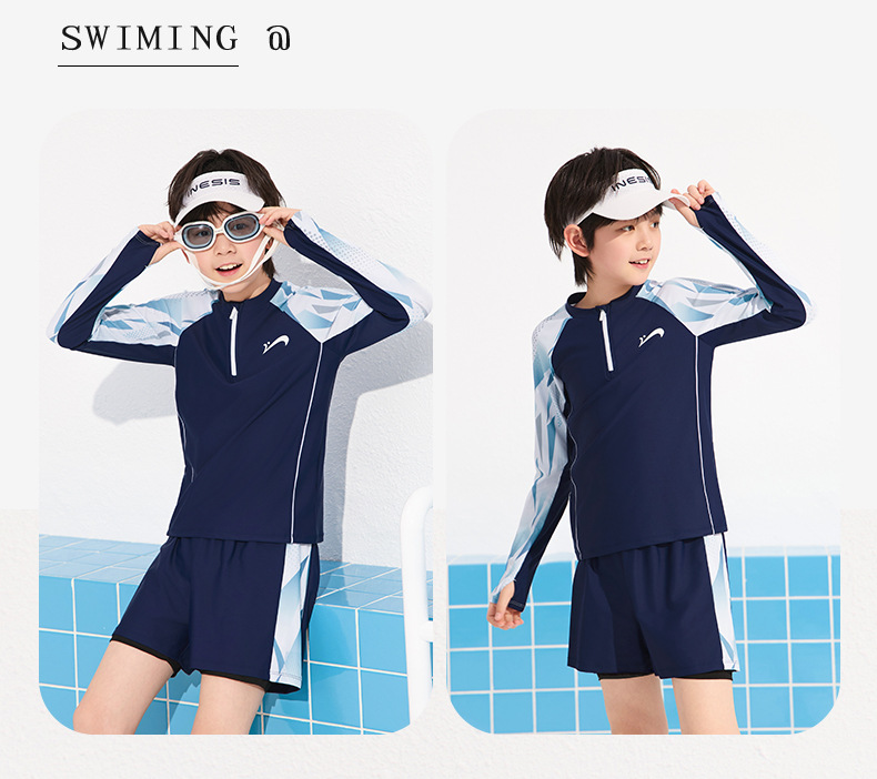 Guirenniao 어린이 수영복 소년 분할 긴팔 수영복 소년 2025 새로운 중대형 어린이 및 청소년 수영복
