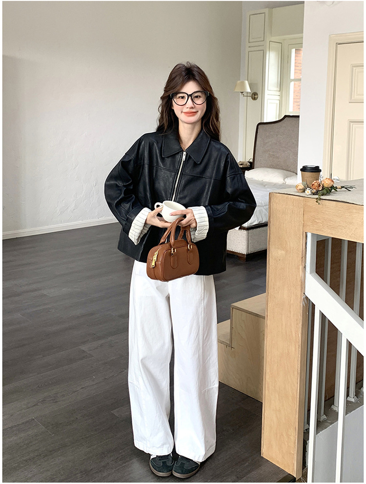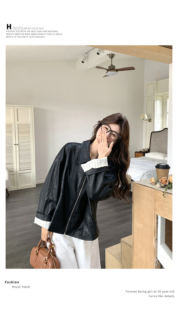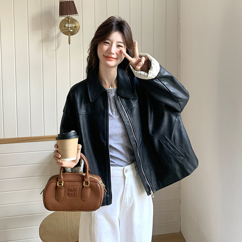 블랙 쇼트 가죽 자켓 여자 2025 봄 새로운 한국 하이 엔드 레트로 캐주얼 옷깃 PU 가죽 자켓스토어 가기