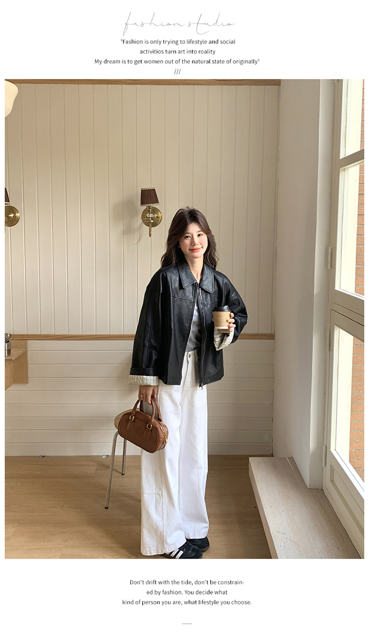 블랙 쇼트 가죽 자켓 여자 2025 봄 새로운 한국 하이 엔드 레트로 캐주얼 옷깃 PU 가죽 자켓