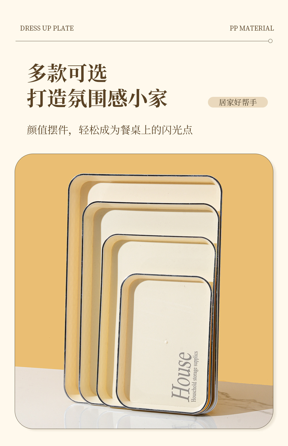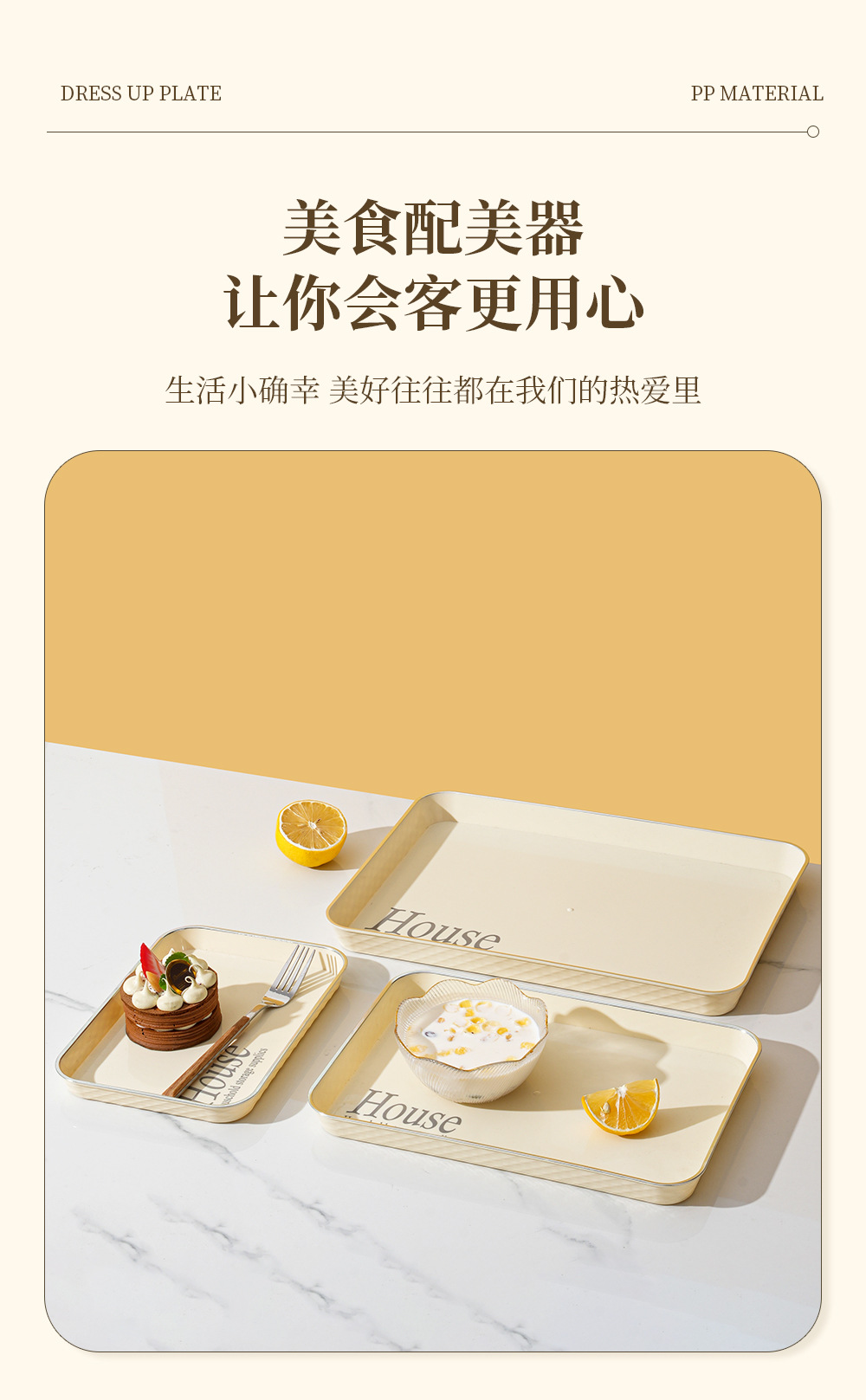크림 스타일 롱 스퀘어 인터넷 유명 플라스틱 디너 플레이트 상업용 케이터링 애프터눈 티 노르딕 디너 플레이트
