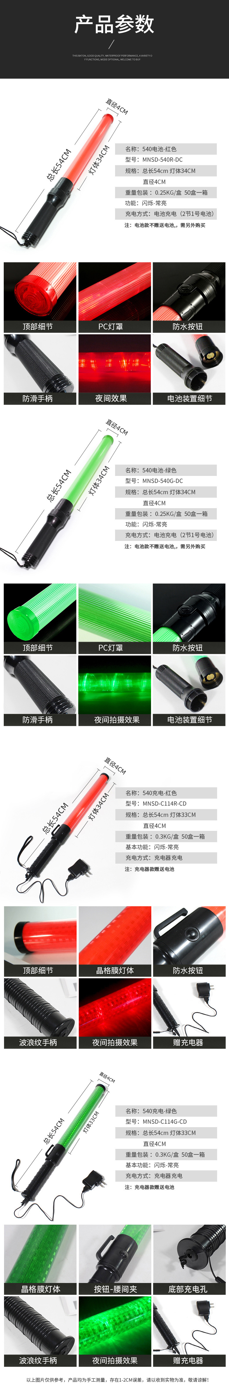 MNSD 540 충전식 교통 안내봉/무대 발광봉/LED 빨간색/녹색 경고 무료 배송스토어 가기