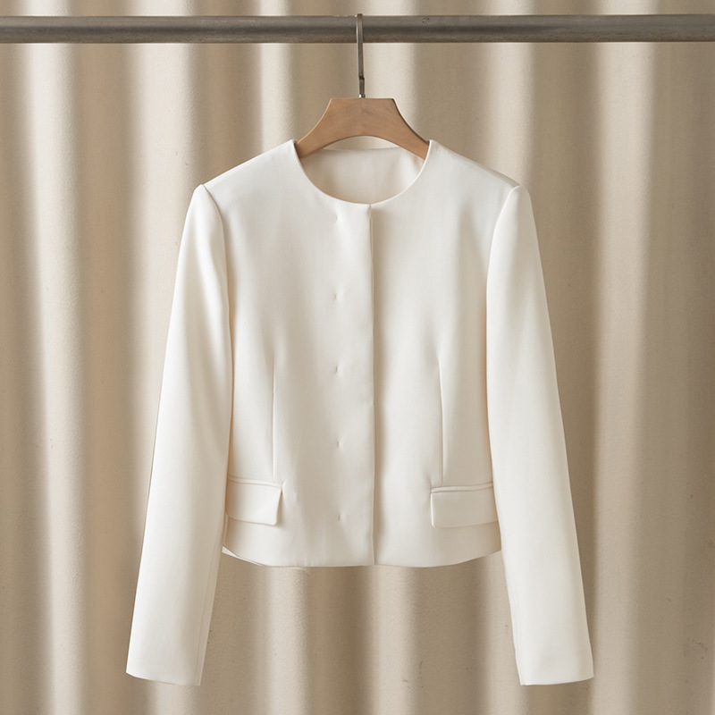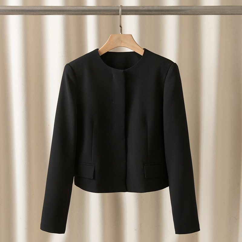 Nanyou 공장 배치 TH Triacetic Acid 혼합 크루 넥 긴 소매 짧은 간단한 재킷 코트 여자 통근 올 매치스토어 가기