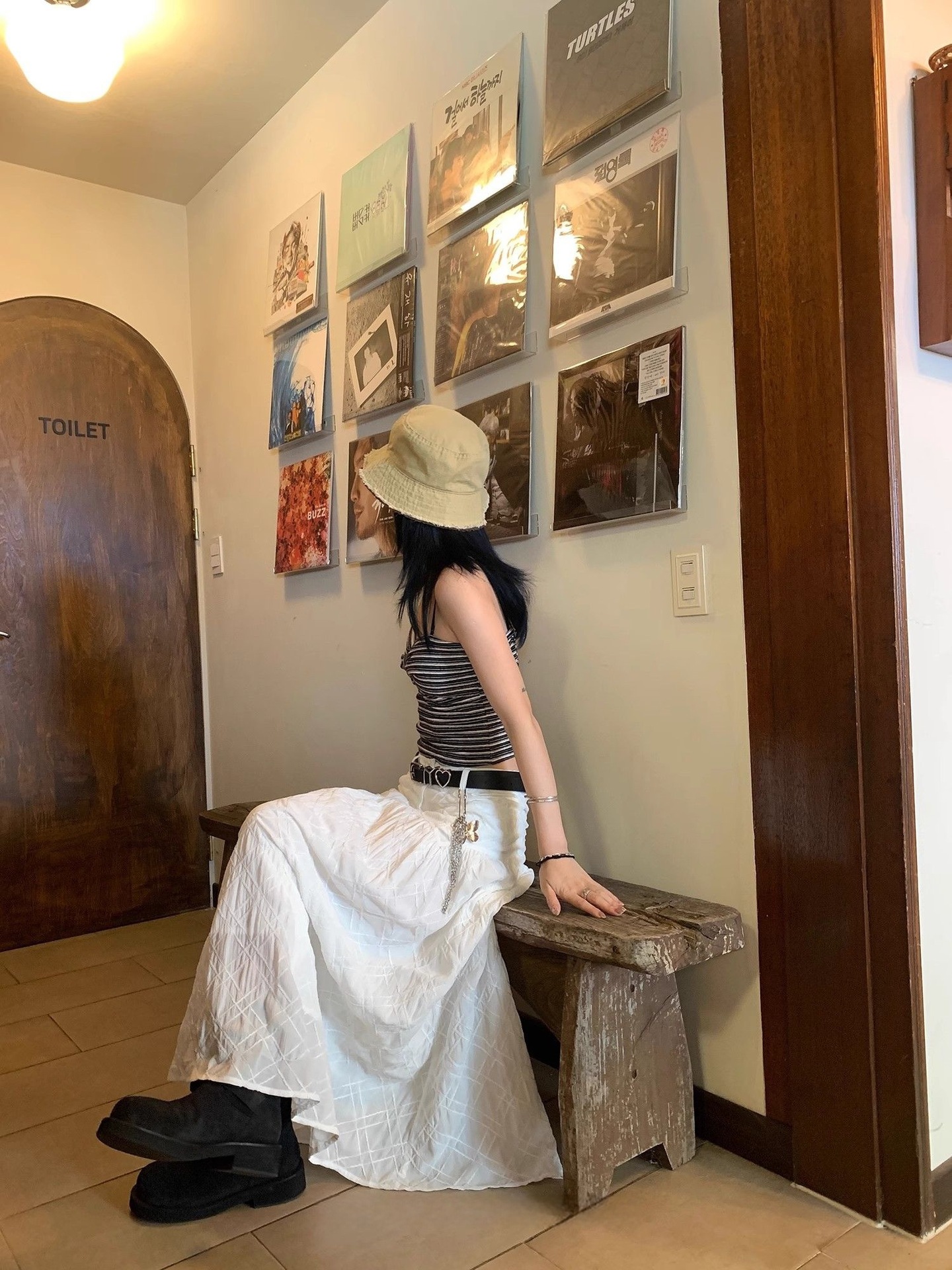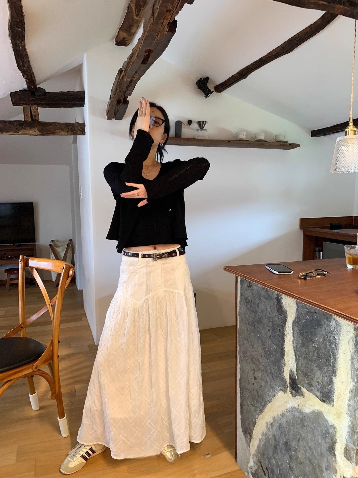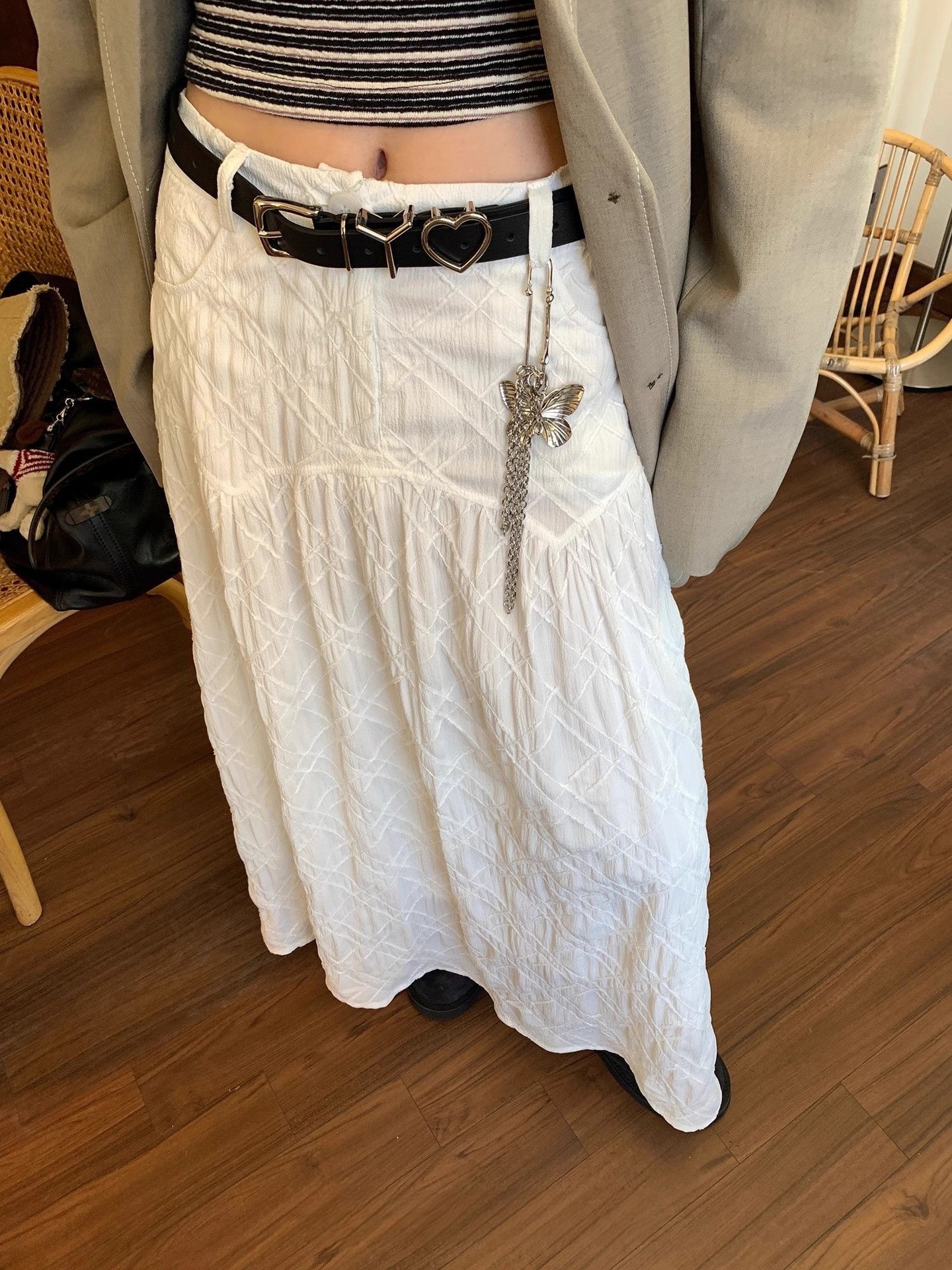틈새 3 차원 격자 무늬 컷 꽃 화이트 스커트 여성의 여름 디자인 센스 높은 허리 A 라인 스커트 슬리밍 중간 길이 스커트스토어 가기