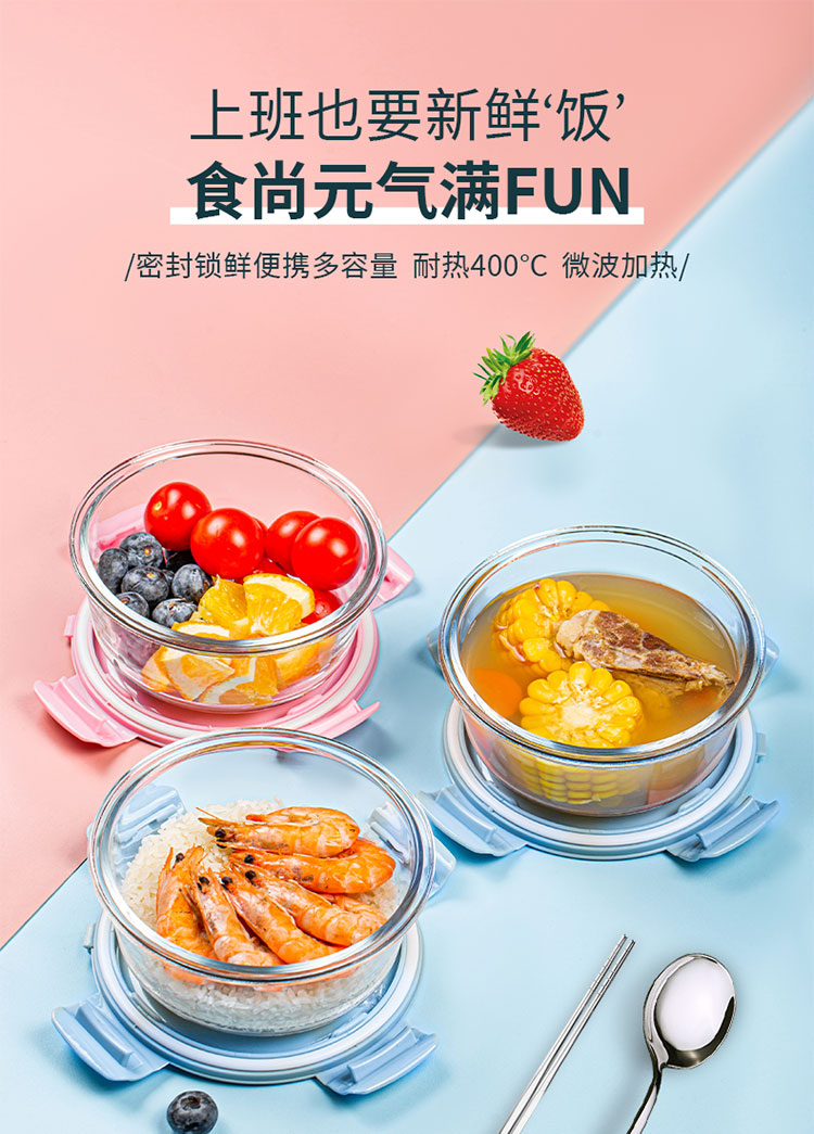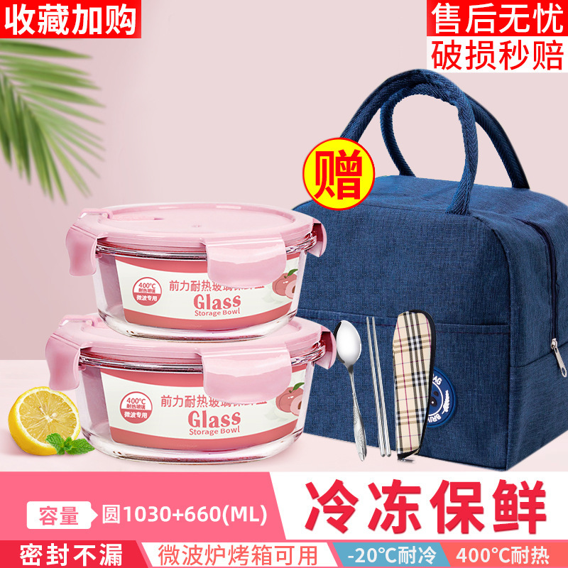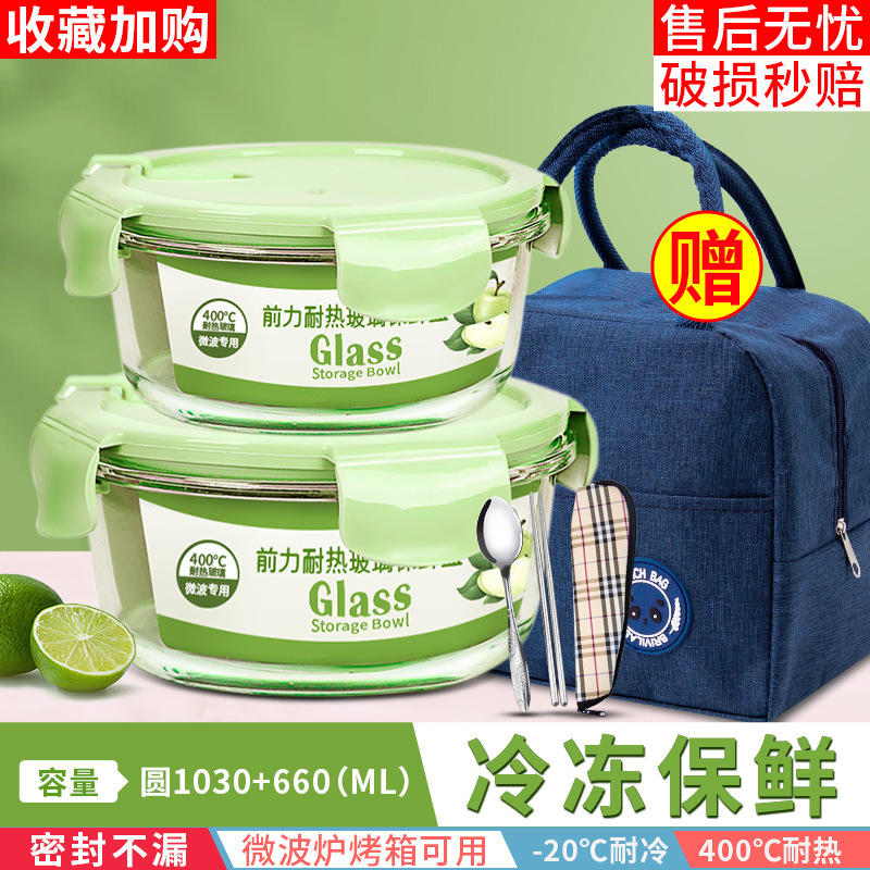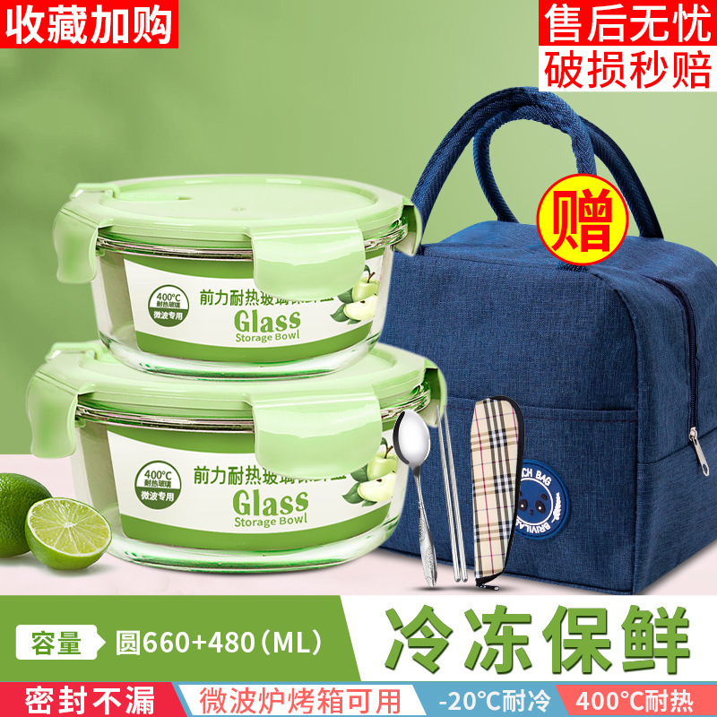 학생 및 직장인을 위한 전자레인지용 유리 도시락, 뚜껑이 있는 도시락, 밀봉 및 신선도 유지, 분리형 도시락, Lingzhi스토어 가기