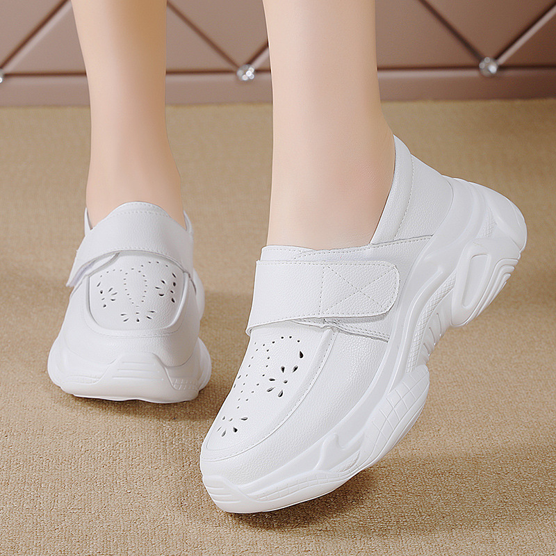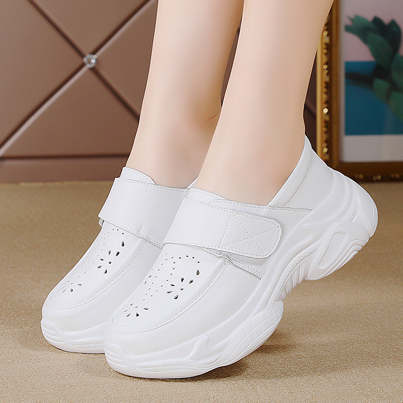 봄 여름 여성용 크로스보더 캐주얼 간호사 신발, 부드러운 밑창, 통기성, 피곤하지 않은 발, 병원 의료 신발, 두꺼운 밑창 흰색 신발스토어 가기
