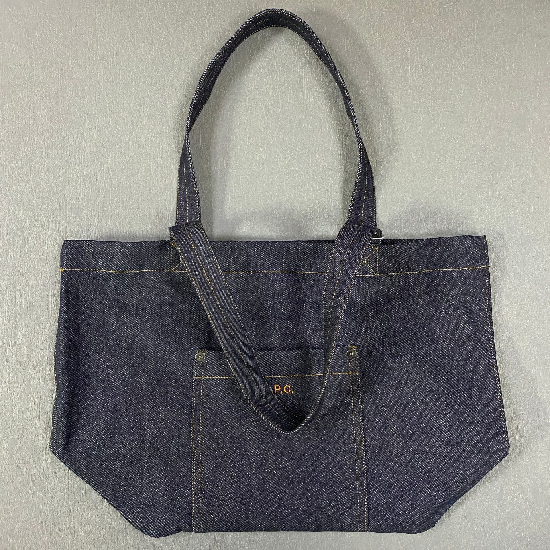 국경 간 전자 상거래 핫 세일 ap 일본과 한국 스타일의 두꺼운 자수 데님 토트 백 대용량 천 가방 쇼핑백