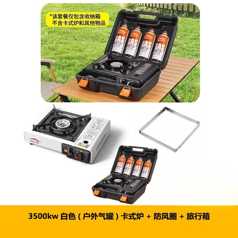 • 3500w 흰색(2인용) 카세트 스토브 + 방풍 링 + 휴대용 상자