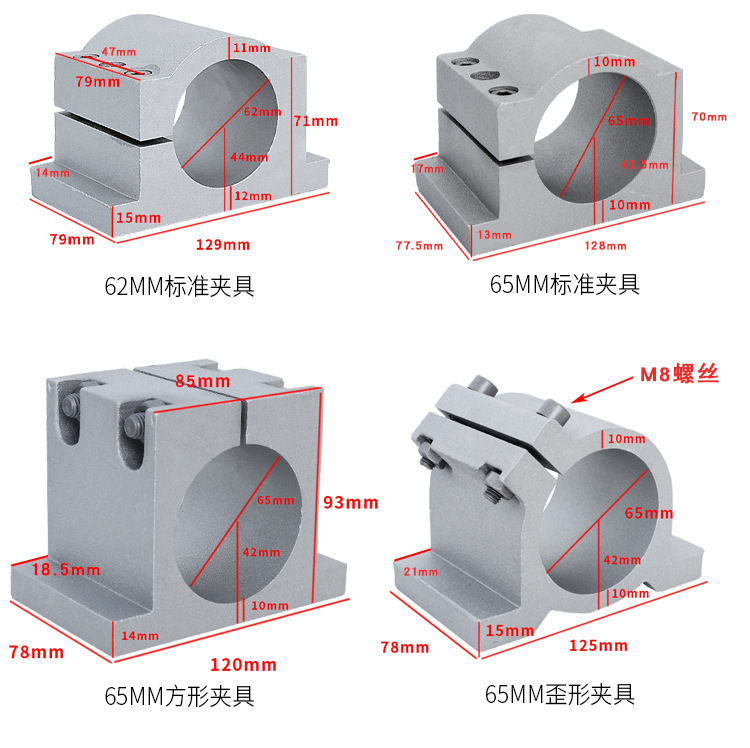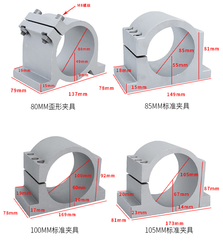 조각 기계 스핀들 고정 장치 모터 홀더 주조 알루미늄 베이스 홀더 클램프 모터 클램프 80mm100mm125M&