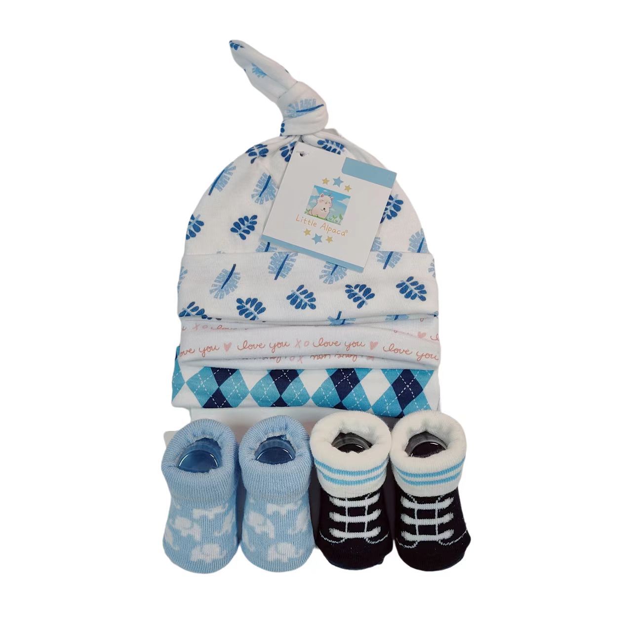 材质:帽子:100%棉,袜子:75%棉,23%涤纶,2%氨纶