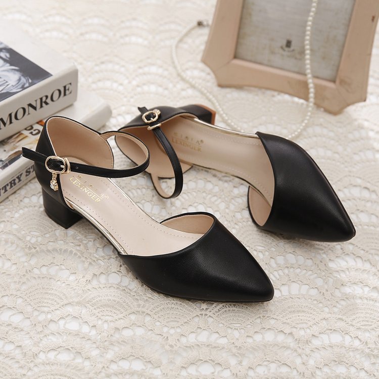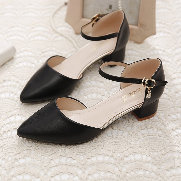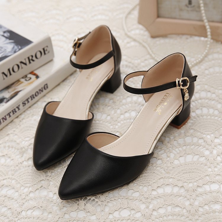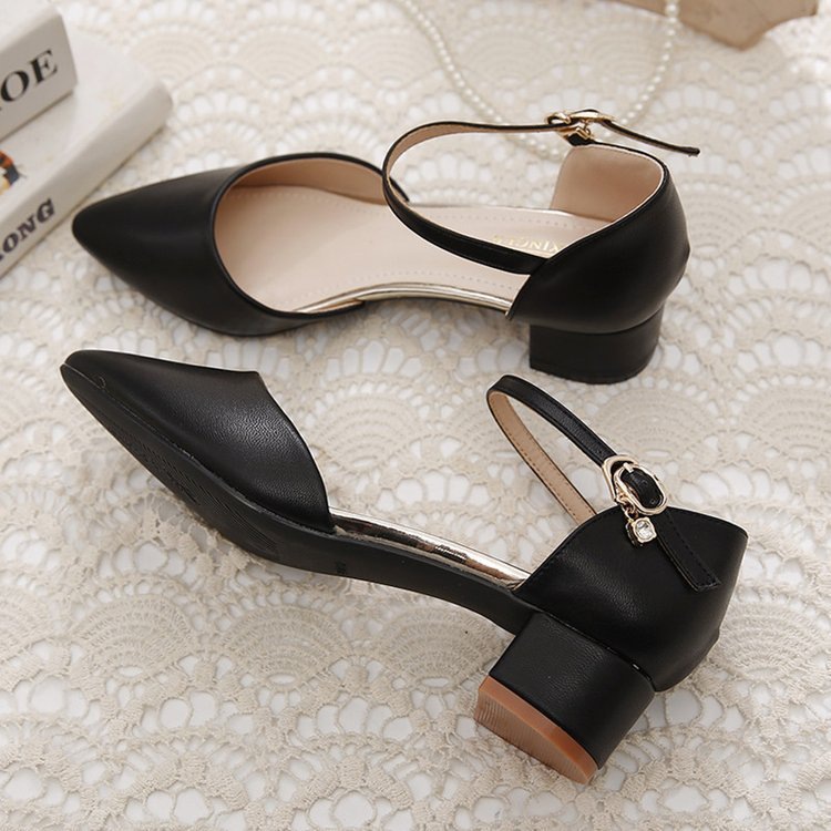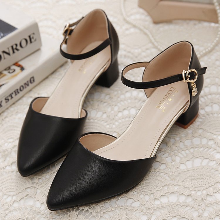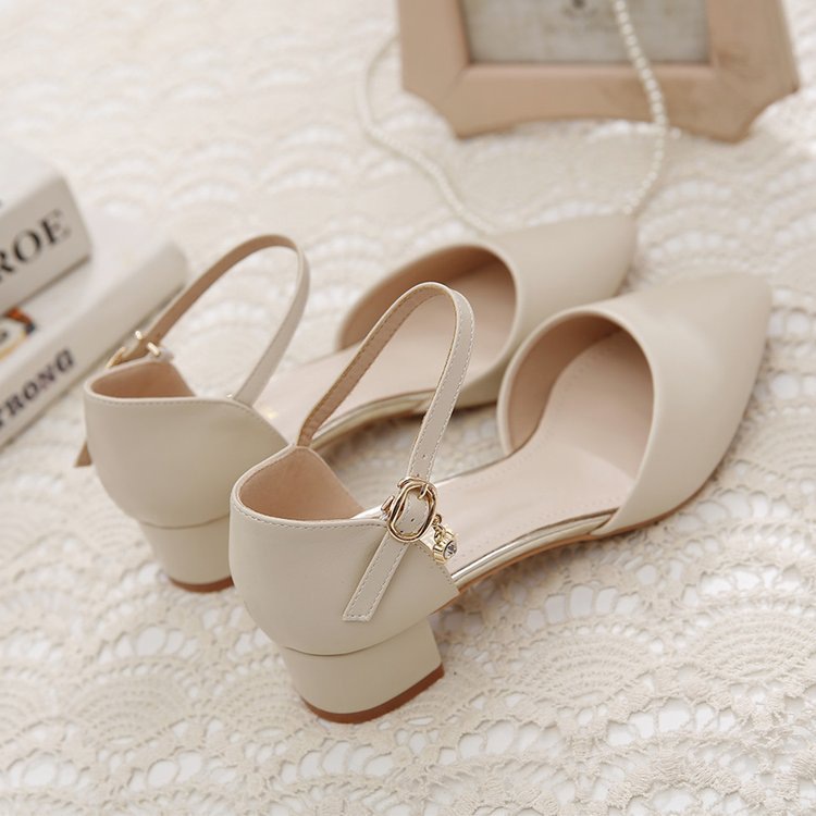 Baotou 샌들 여성 청키 힐 2025 봄과 여름 새로운 미드 힐 싱글 레이어 신발 올매치 포인팅 편안한 워킹 여성용 샌들