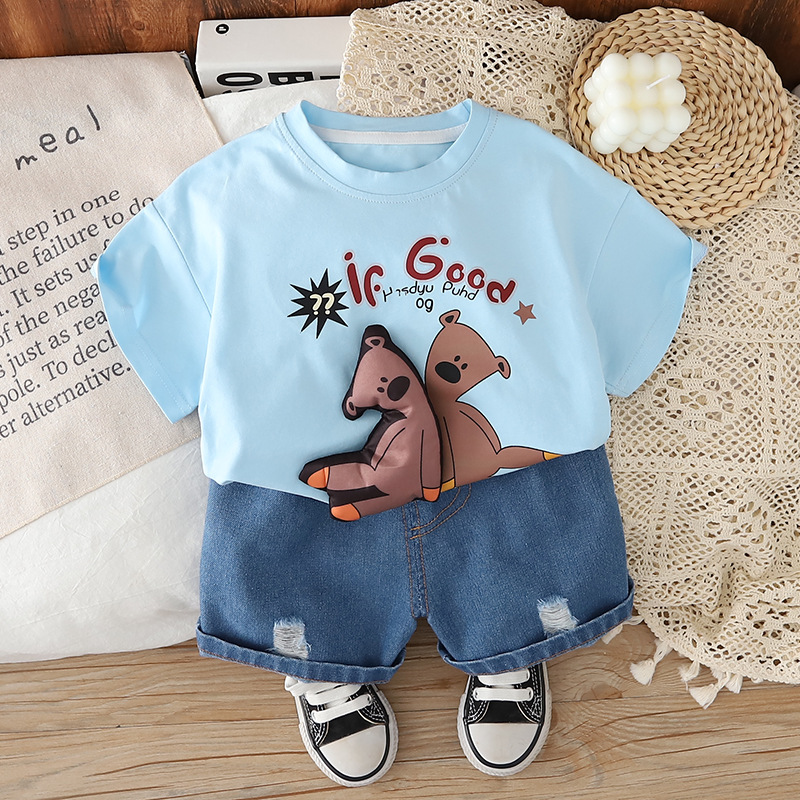 대외 무역 아동 의류 여름 유행 2025 뜨거운 판매 어린 소년 면화 T 반팔 아동복 0-5 세 아기 옷 유행스토어 가기