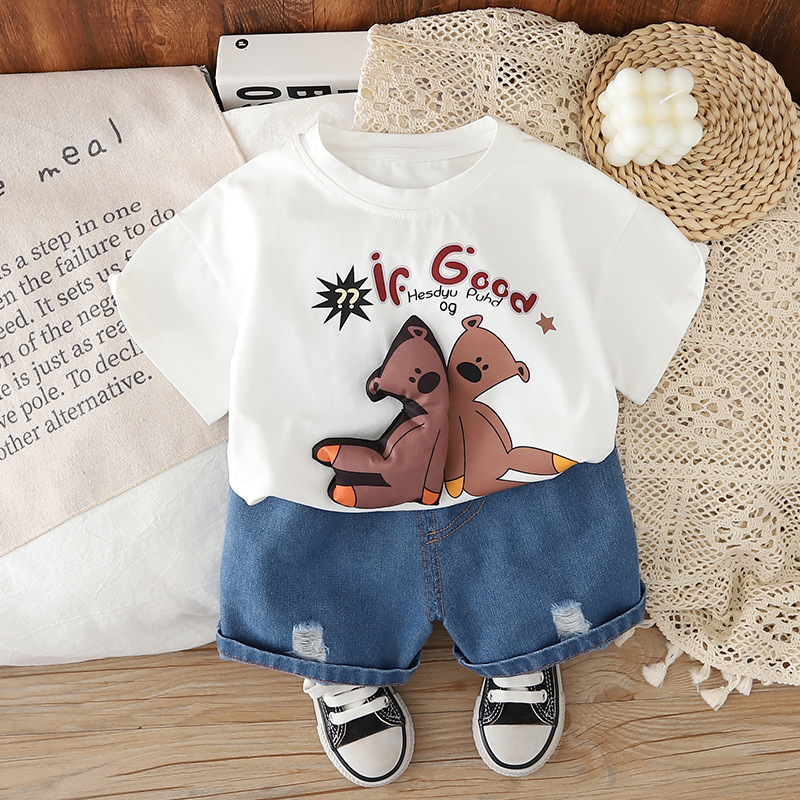 대외 무역 아동 의류 여름 유행 2025 뜨거운 판매 어린 소년 면화 T 반팔 아동복 0-5 세 아기 옷 유행