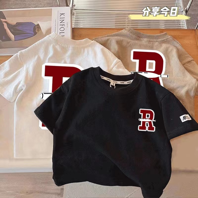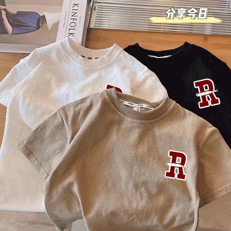 2024 새로운 여름 스타일 유행 소년의 멋진 순수 코튼 반팔 티셔츠 어린이 소년 베이비 얇은상의스토어 가기