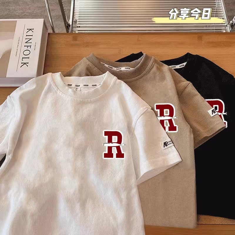 2024 새로운 여름 스타일 유행 소년의 멋진 순수 코튼 반팔 티셔츠 어린이 소년 베이비 얇은상의