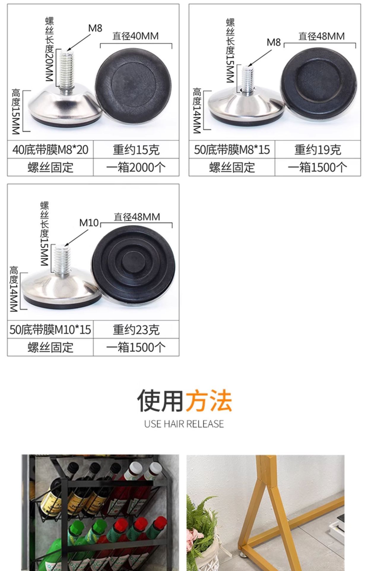 조정 가능한 지지대 소파 커피 테이블 거실 테이블 침대 다리 높이 욕실 캐비닛 소음 감소 스테인레스 스틸 M & M