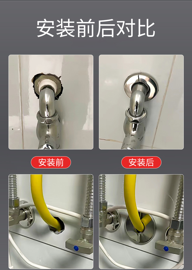 가스 온수기 연기 배출구 커버 장식 커버 스테인레스 스틸 앵글 밸브 구멍 배기 파이프 수도관 커버 M&