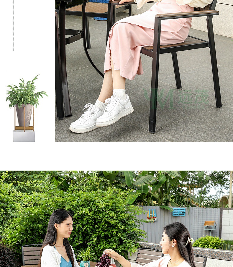 야외 안뜰 플라스틱 나무 테이블과 의자 부식 방지 목재 알루미늄 합금 레저 빌라 야외 테이블 방수 자외선 차단제 식탁 및 의자스토어 가기