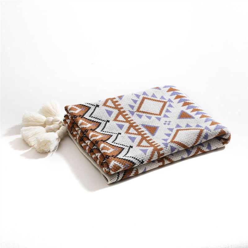 제조업체 맞춤형 복고풍 펜던트 보헤미안 니트 자카드 담요 사무실 낮잠 담요 야외 캠핑 담요