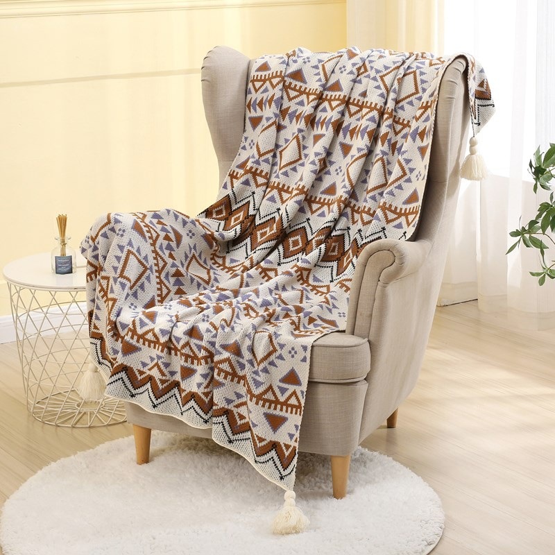 제조업체 맞춤형 복고풍 펜던트 보헤미안 니트 자카드 담요 사무실 낮잠 담요 야외 캠핑 담요스토어 가기