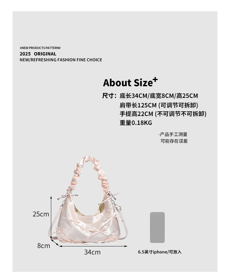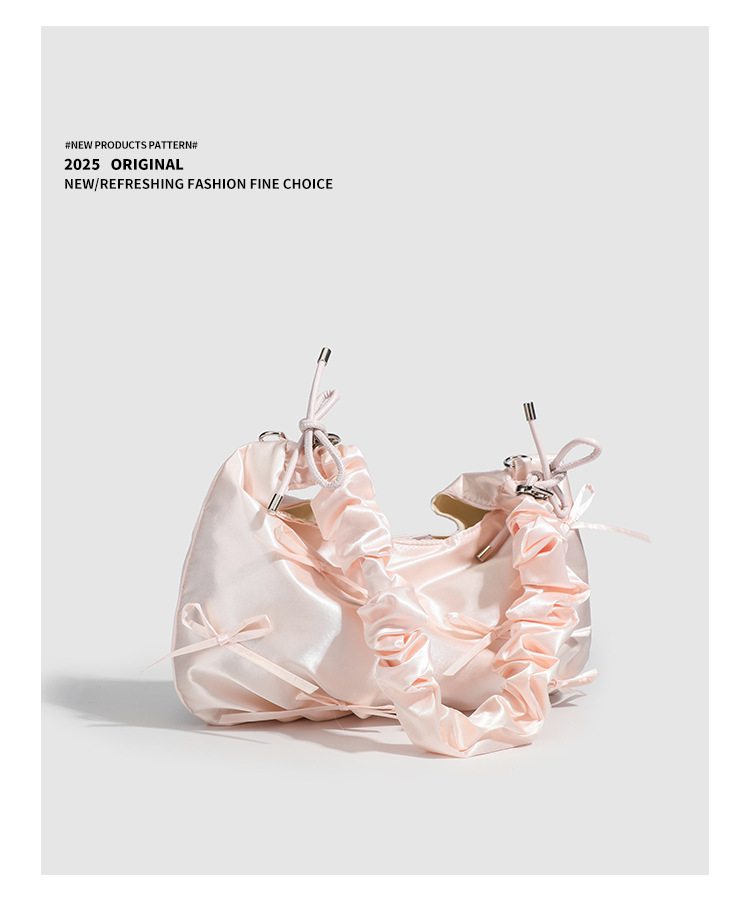 달콤한 소녀풍 리본 구름 가방, 귀엽고 다재다능한 주름 핸드백, 2026년 신상 숄더백 겸 겨드랑이 가방스토어 가기