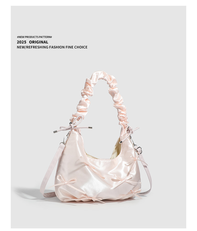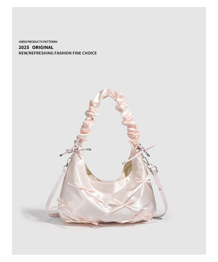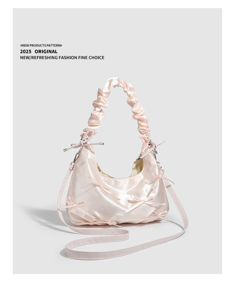 달콤한 소녀풍 리본 구름 가방, 귀엽고 다재다능한 주름 핸드백, 2026년 신상 숄더백 겸 겨드랑이 가방