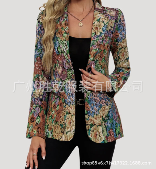2025년 신상품 크로스보더 유럽 및 미국 의류 아마존 정장 패셔너블하고 우아한 원버튼 여성 정장 재킷스토어 가기