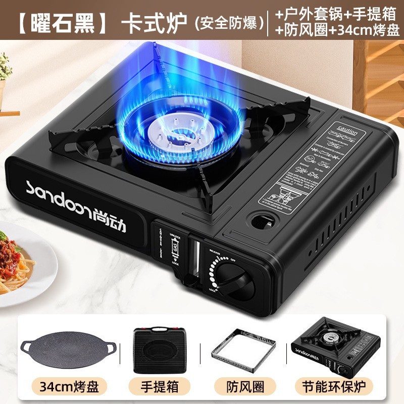 • 블랙 카세트 스토브 + 여행가방 + 방풍링 + 30cm 베이킹 팬