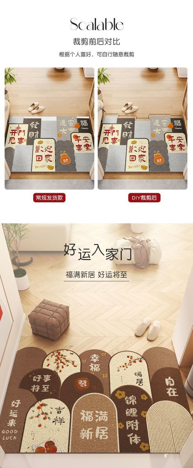 새로운 중국 스타일 축제 입구 문 매트 실크 링 바닥 매트 절단 및 스크래핑 머드와 토양 문지르는 발 매트 홈 입구 카펫스토어 가기