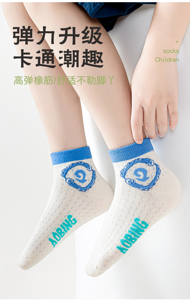 남학생과 여학생을위한 원래 어린이 양말 만화 Nezha 중간 튜브 양말 봄과 여름 얇은 메쉬 통기성 뼈없는 스포츠면 양말