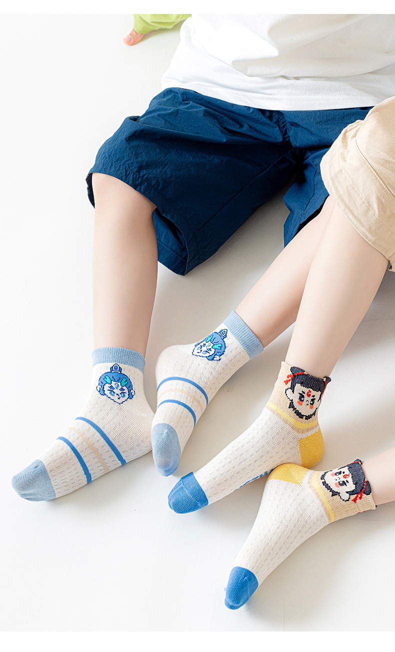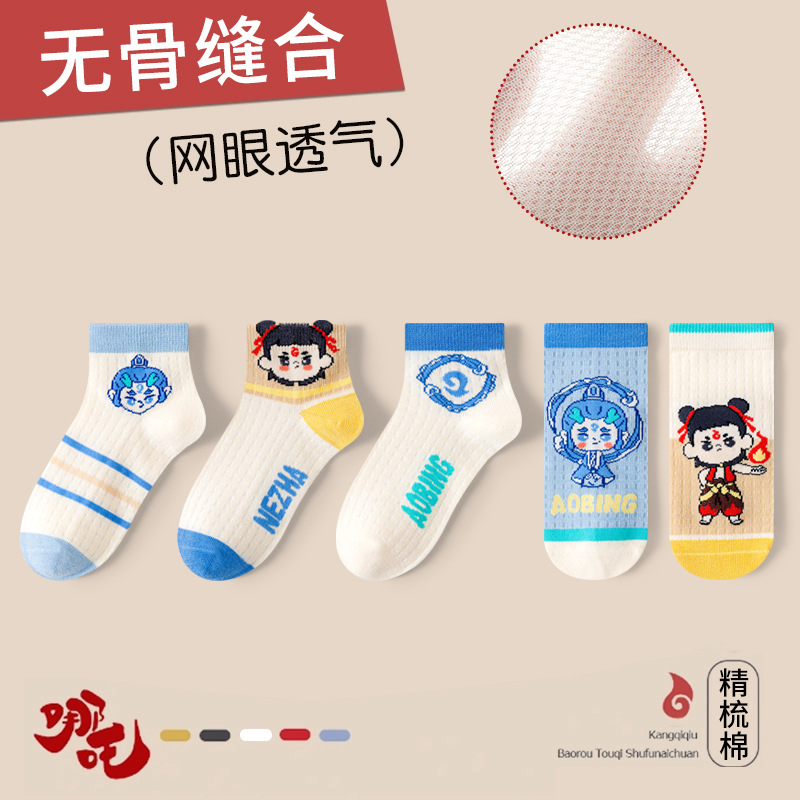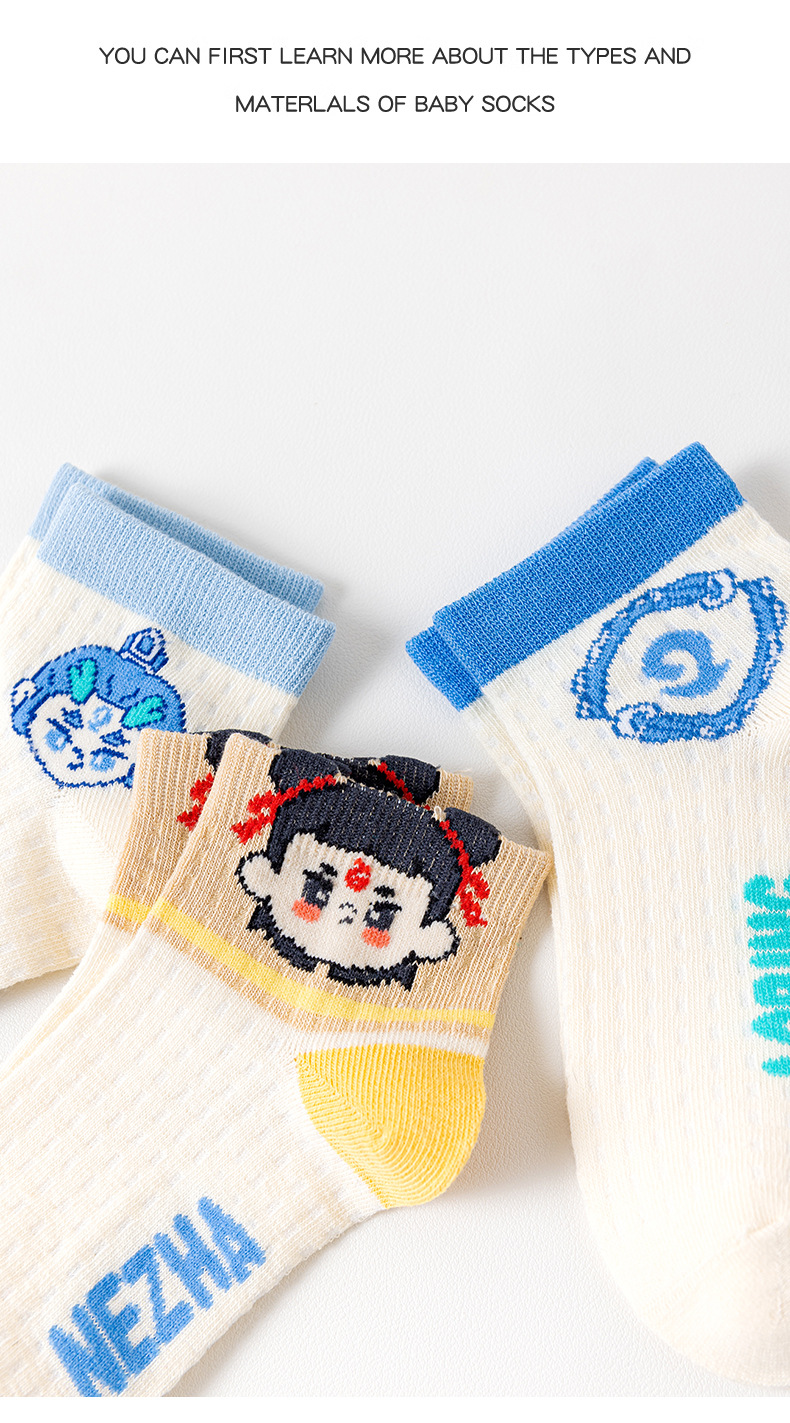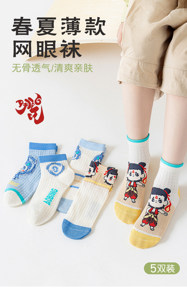 남학생과 여학생을위한 원래 어린이 양말 만화 Nezha 중간 튜브 양말 봄과 여름 얇은 메쉬 통기성 뼈없는 스포츠면 양말스토어 가기