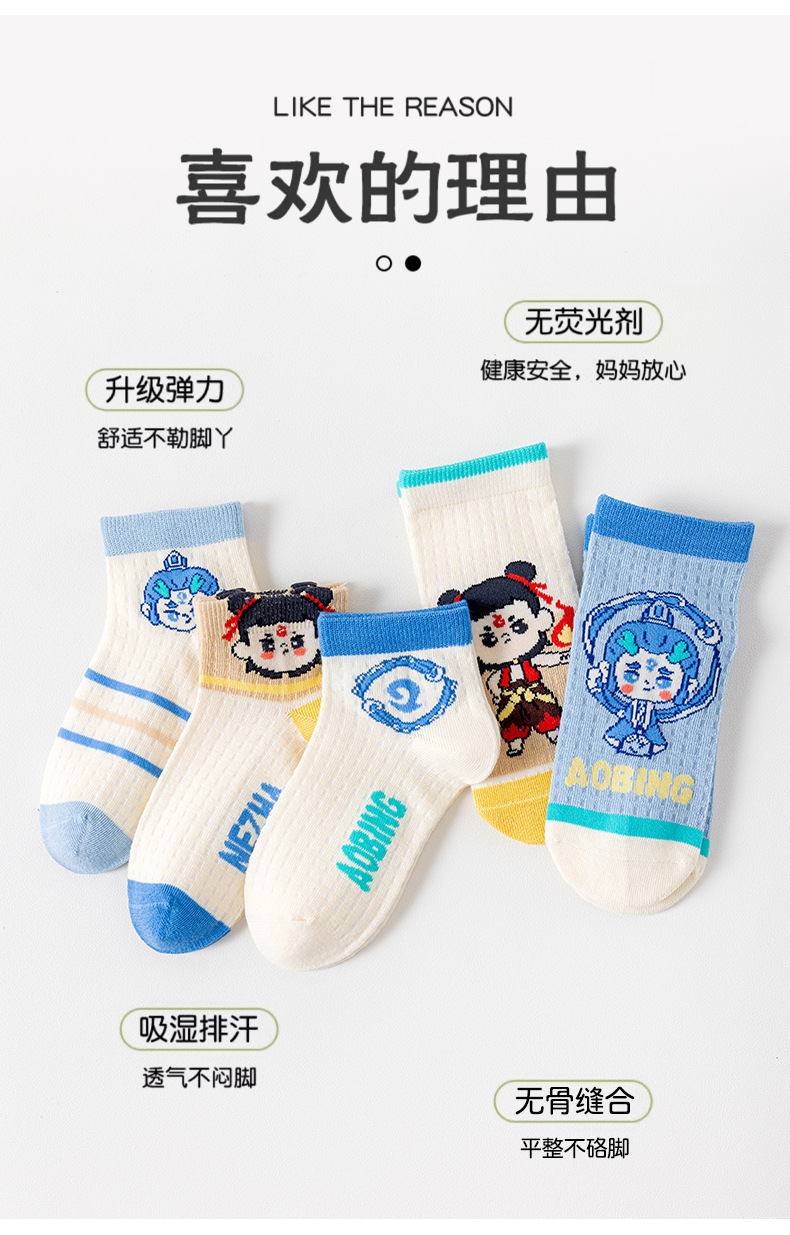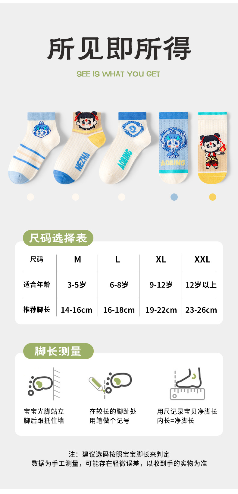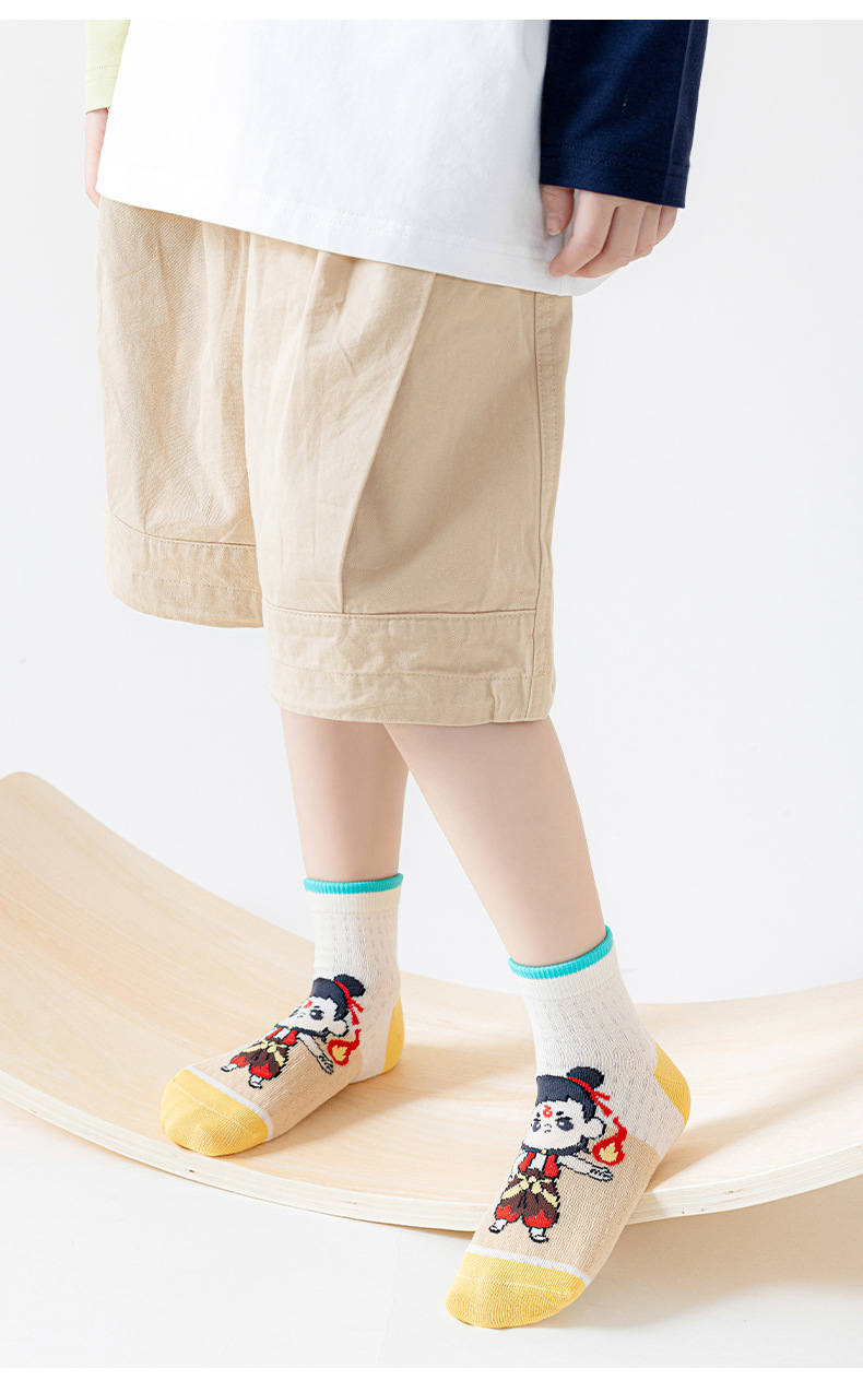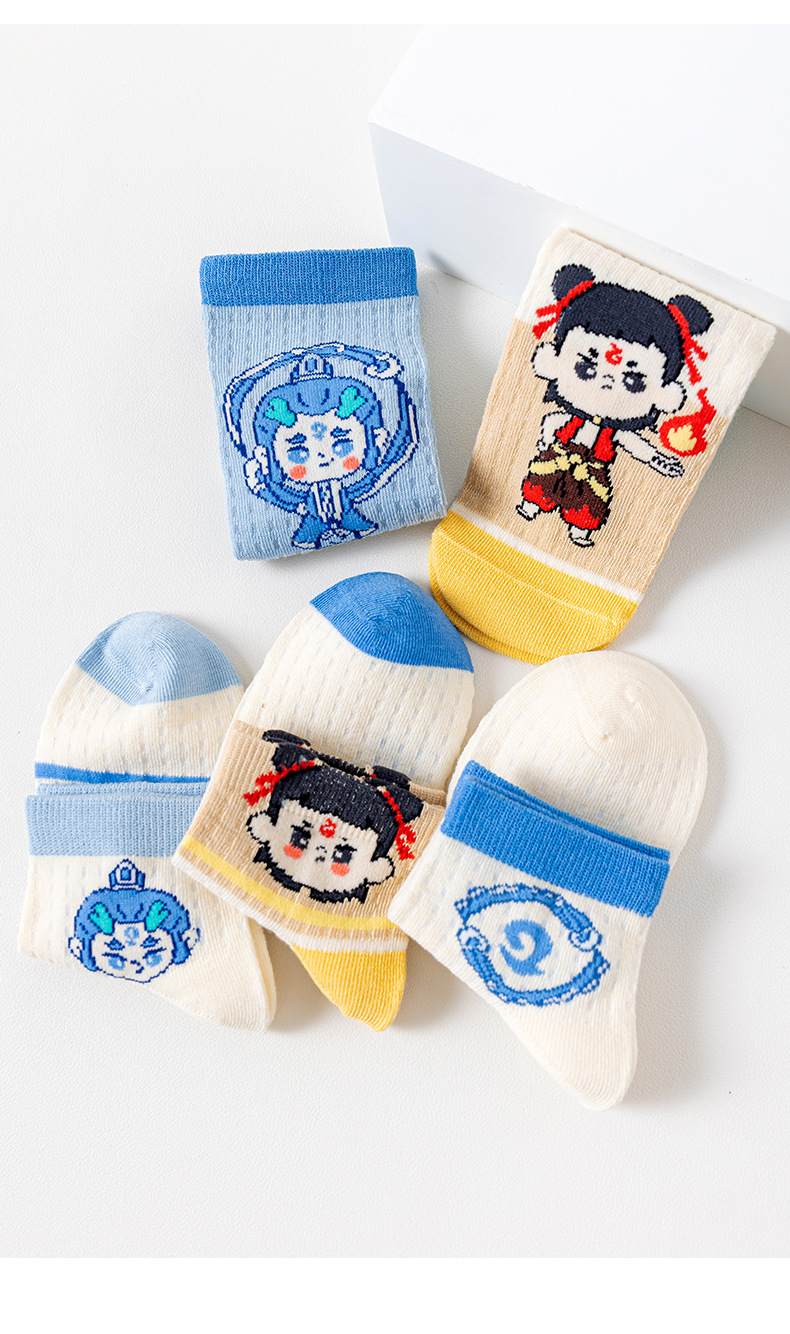 남학생과 여학생을위한 원래 어린이 양말 만화 Nezha 중간 튜브 양말 봄과 여름 얇은 메쉬 통기성 뼈없는 스포츠면 양말스토어 가기