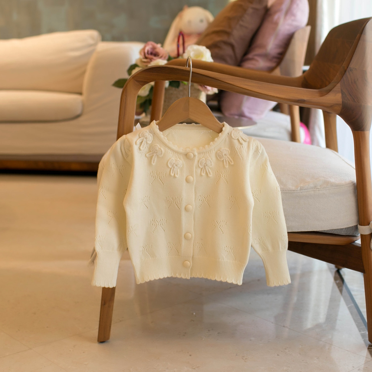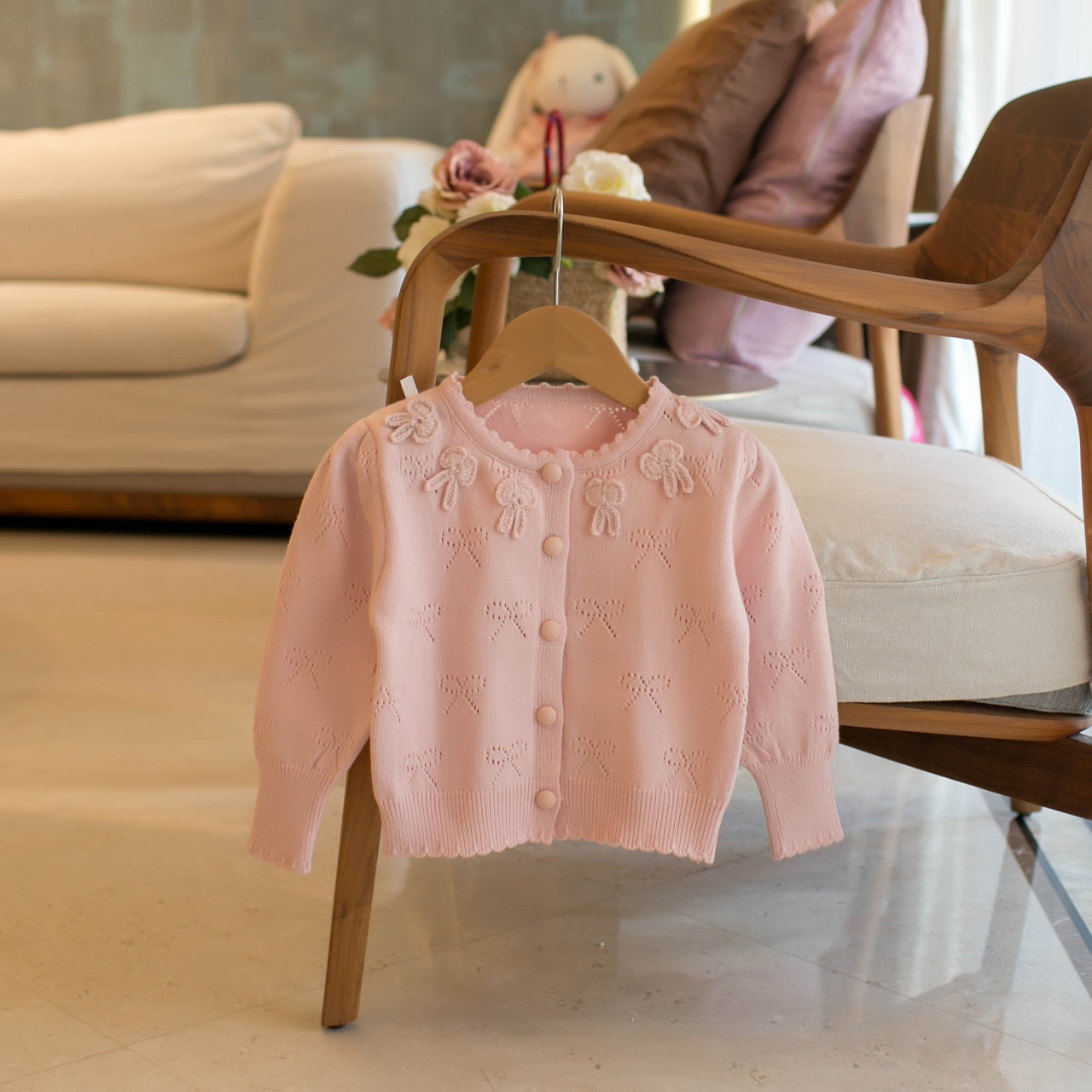 드롭쉬핑 봄/가을 여아용 신상품 토끼 모양 펀칭 스웨터 유아용 가디건 N383