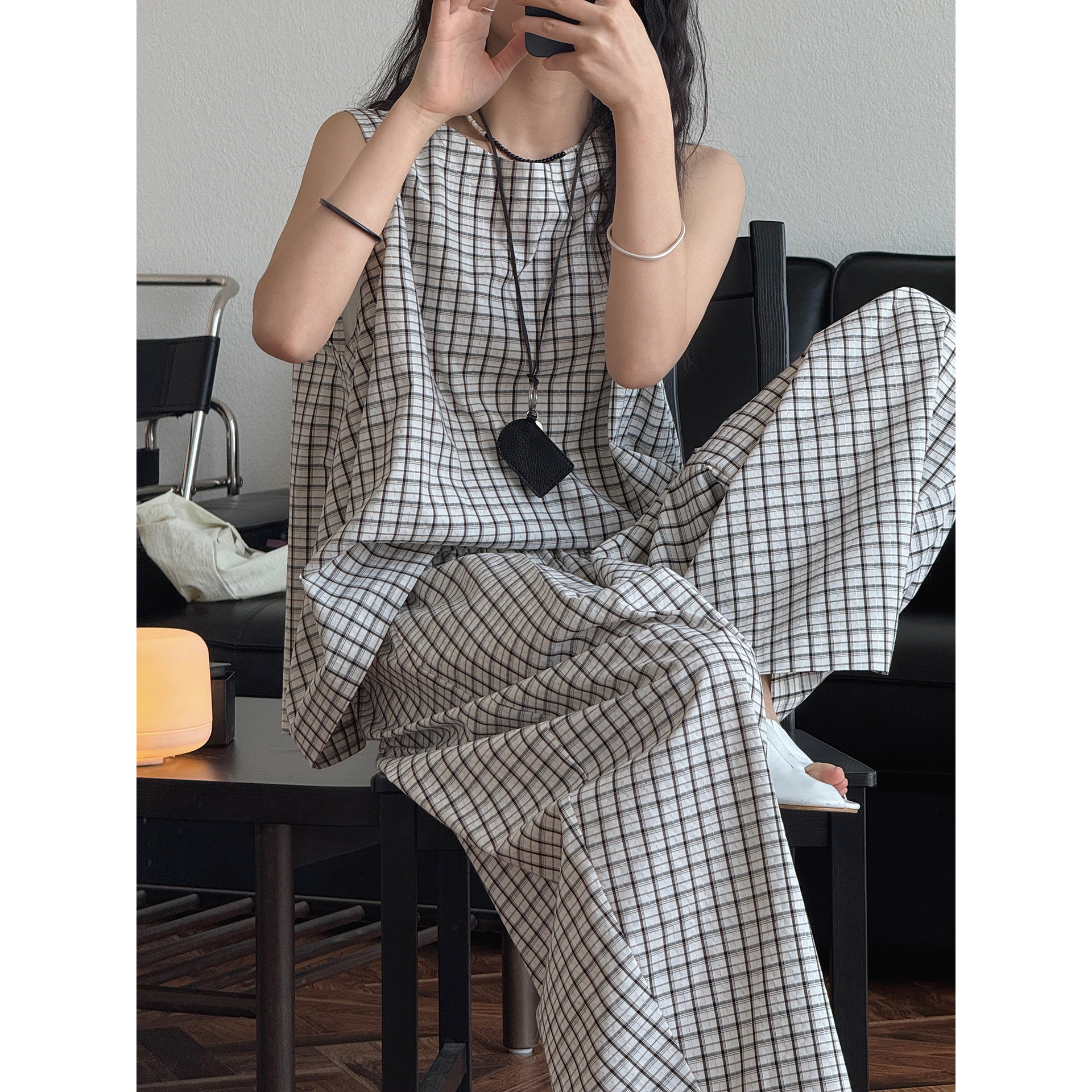 Louvu 여름 새로운 한국 스타일 간단한 INS 밝은 실크 격자 무늬 A 라인 조끼 여성을위한 경량 편안한 프로필 탑스토어 가기