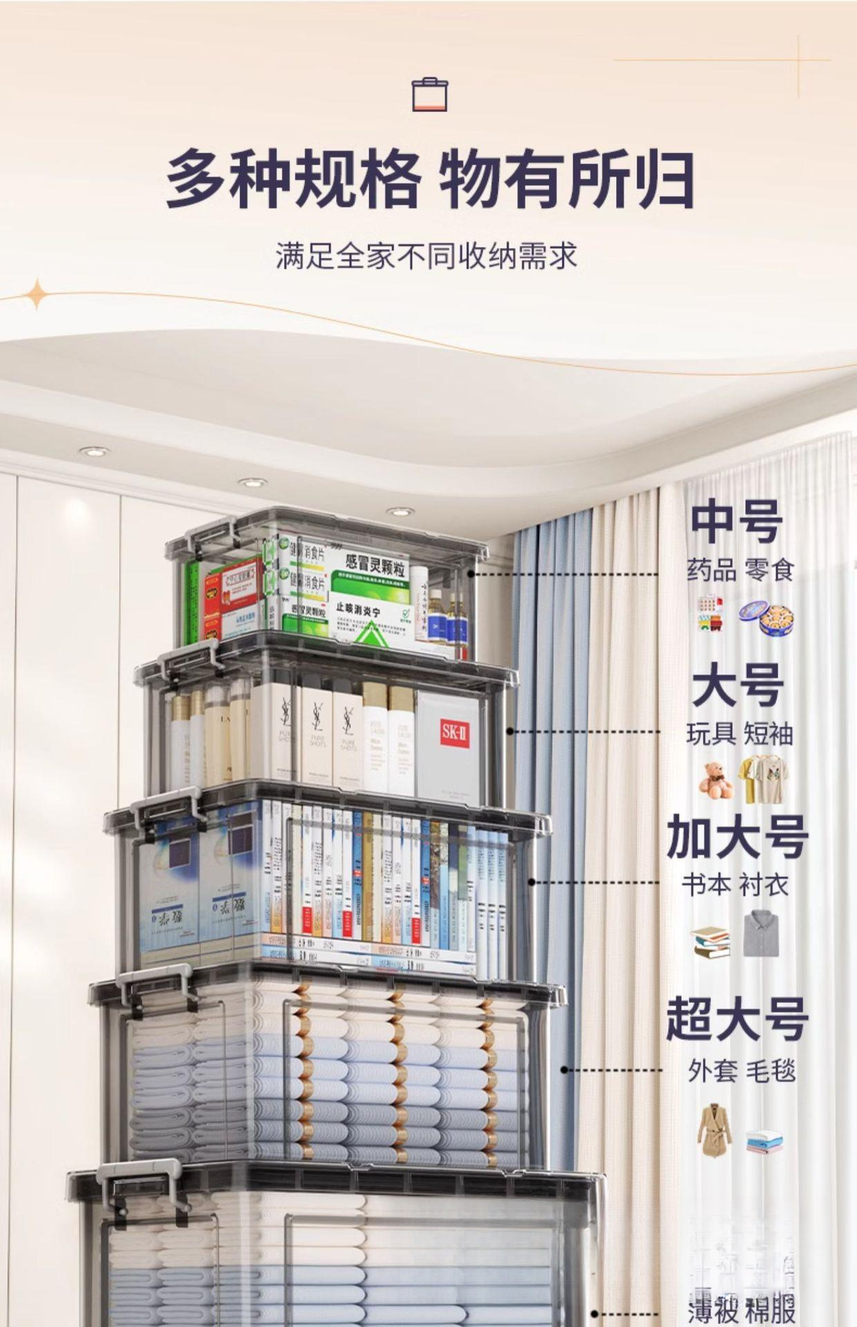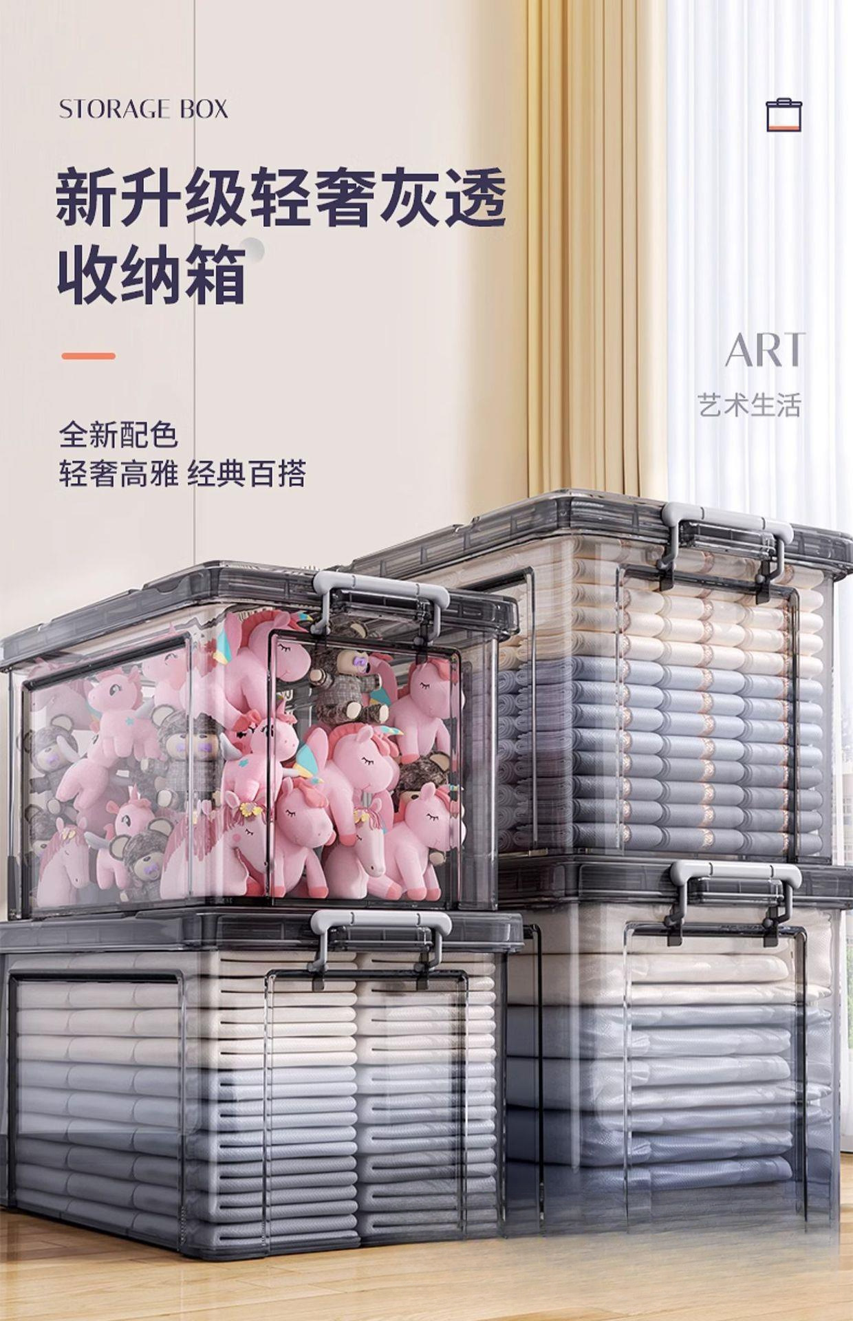 투명한 보관 상자 가정용 플라스틱 보관 상자 의류 및 장난감 보관 상자 대용량 스낵 백업 보관 상자스토어 가기