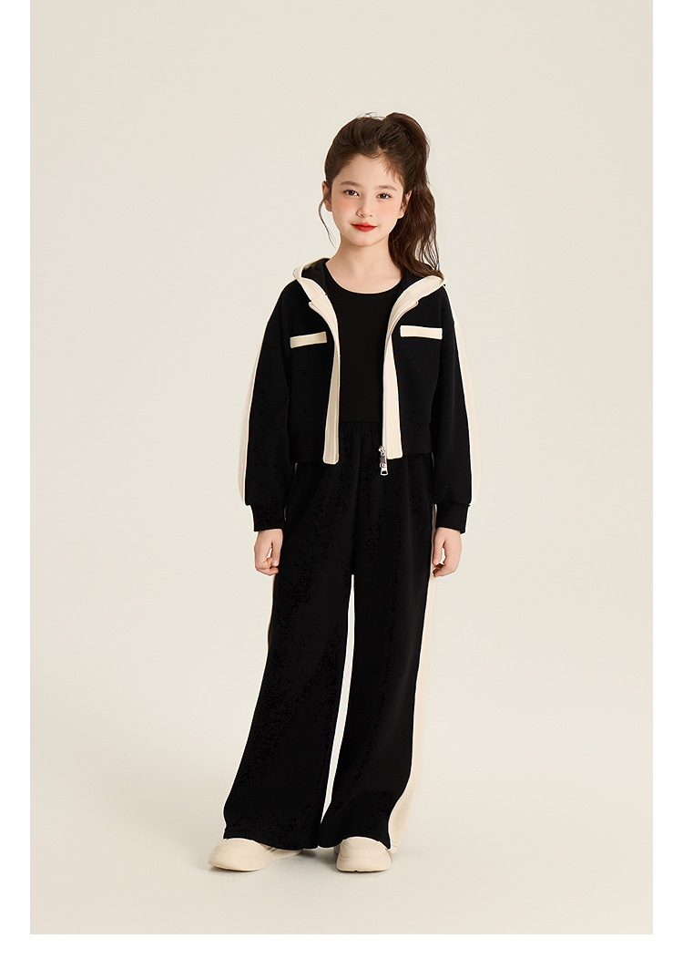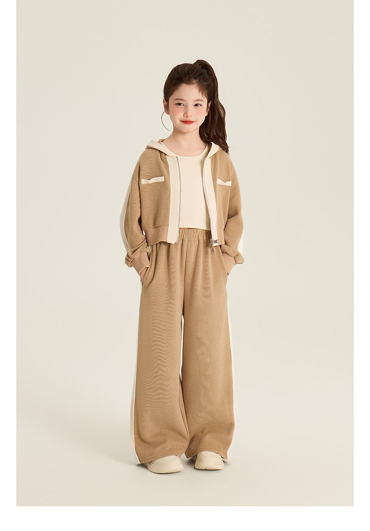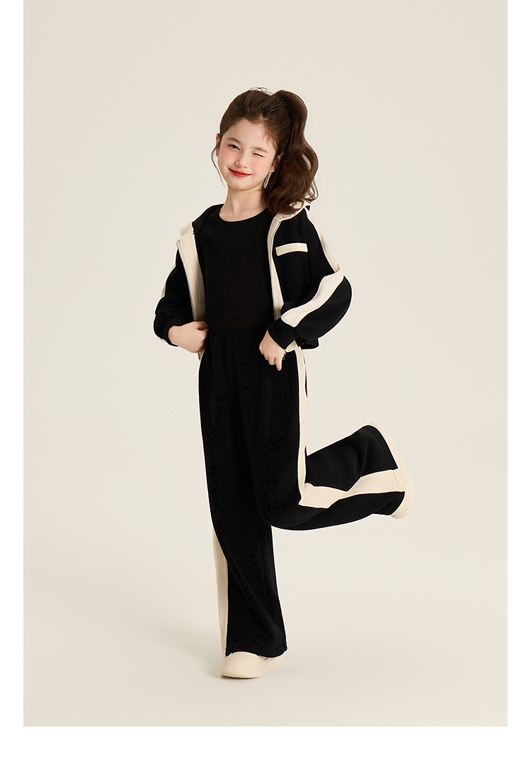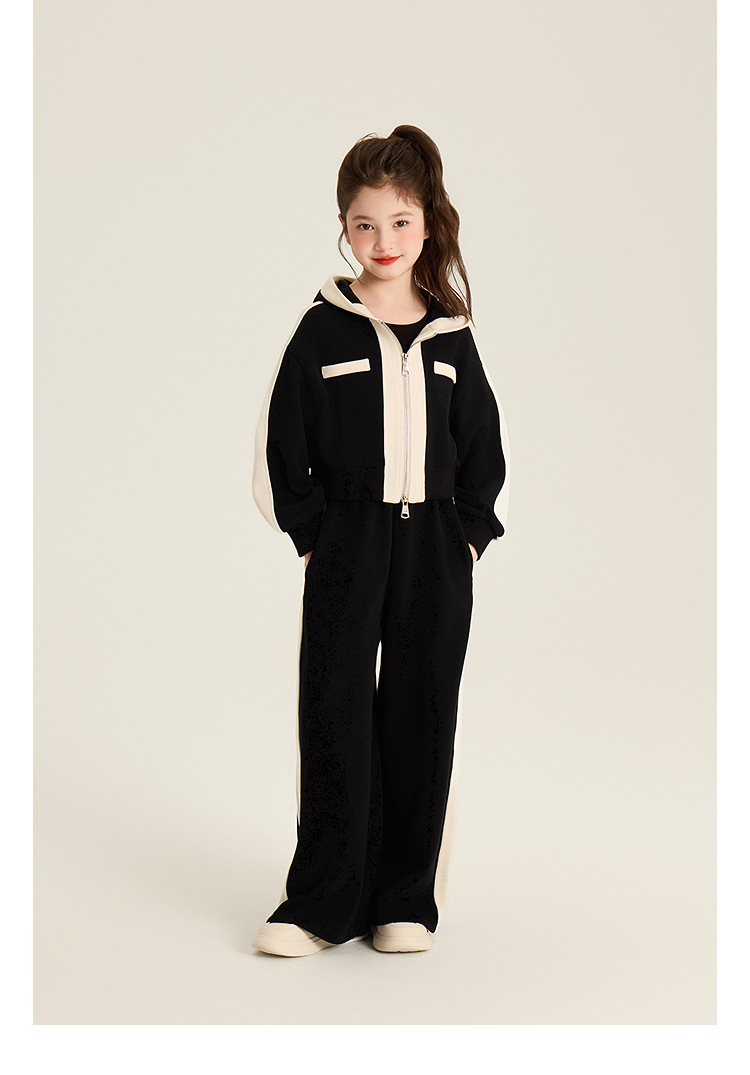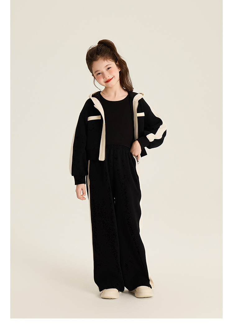 Amybaby 여아 정장 2025 봄 신작 패션 스플라이싱 대비 색상 캐주얼 후드 가디건 와이드 팬츠