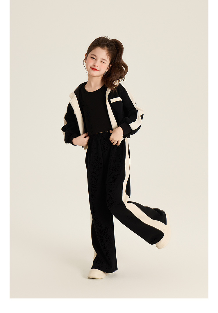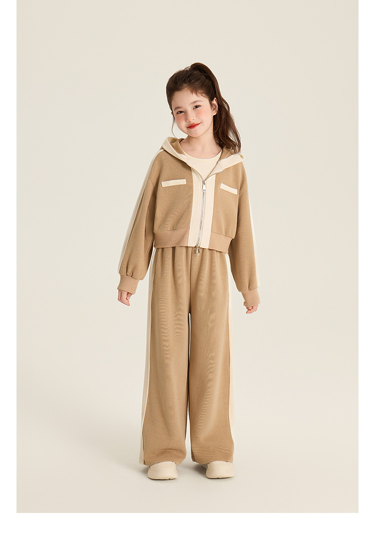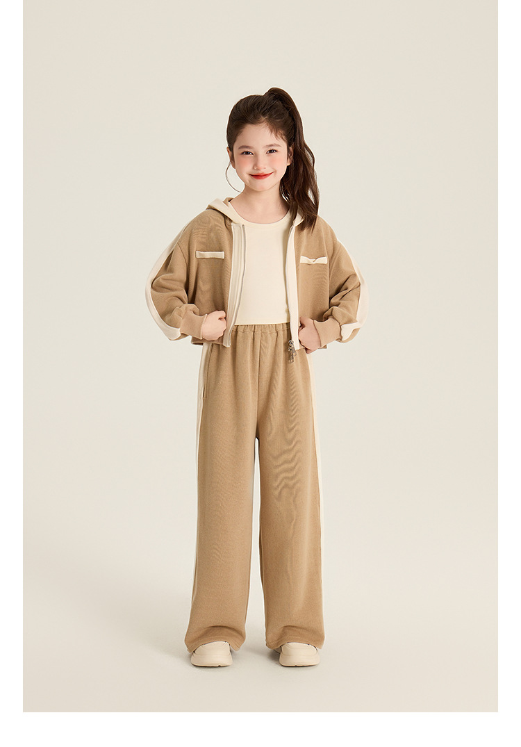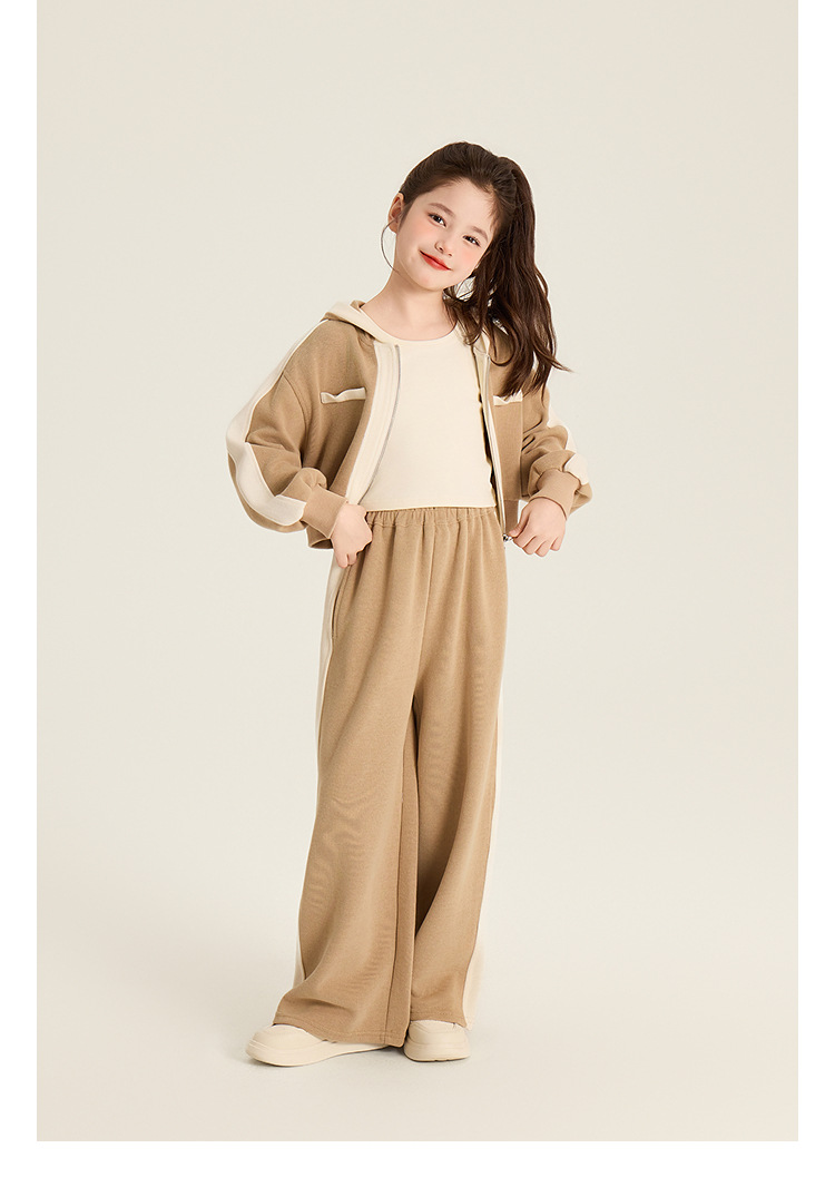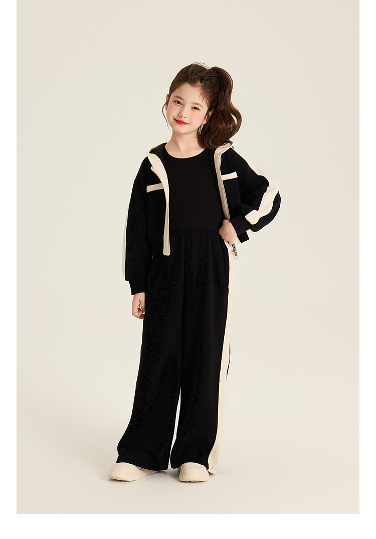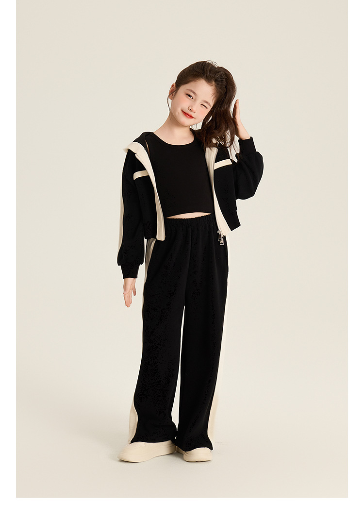 Amybaby 여아 정장 2025 봄 신작 패션 스플라이싱 대비 색상 캐주얼 후드 가디건 와이드 팬츠