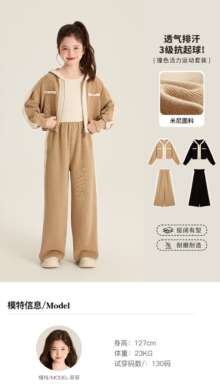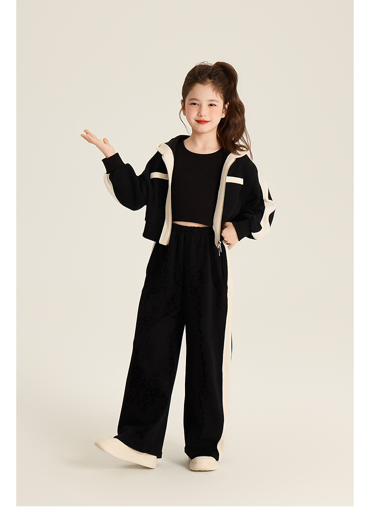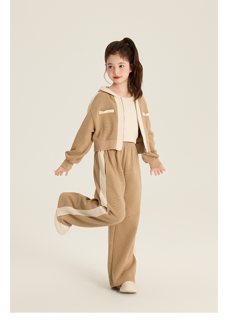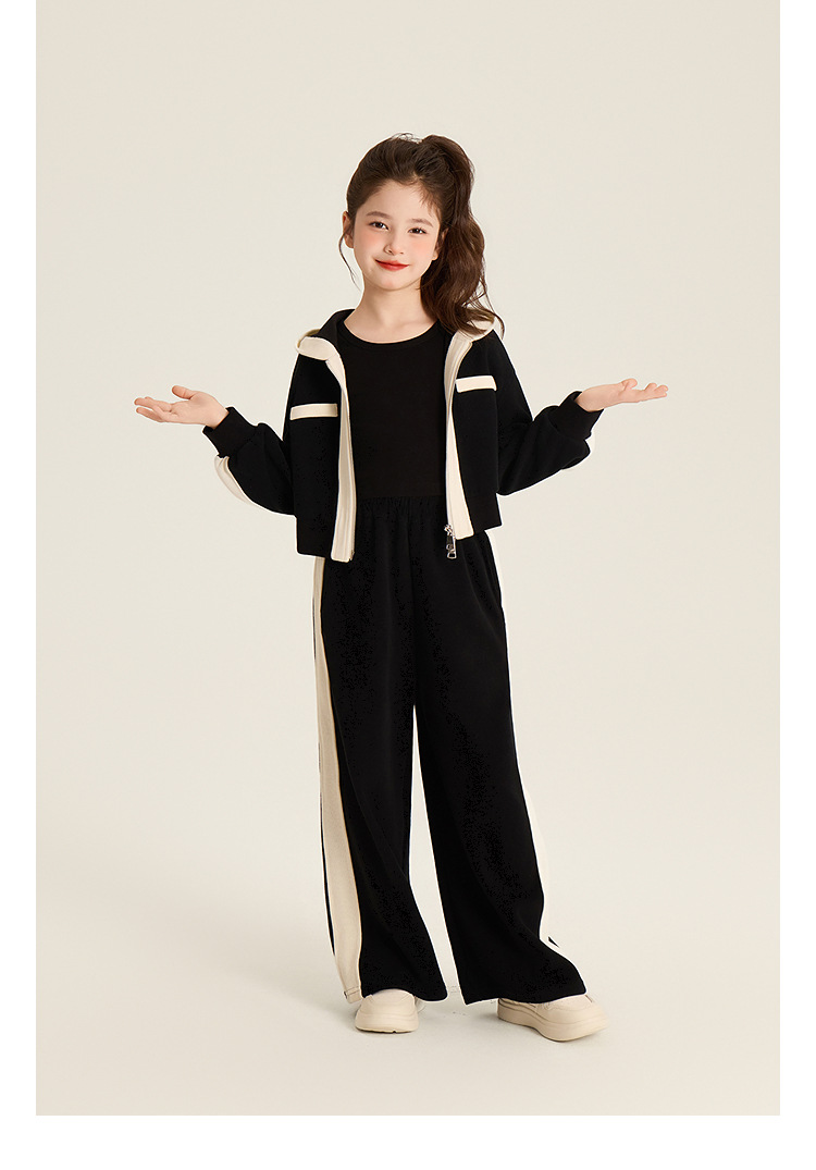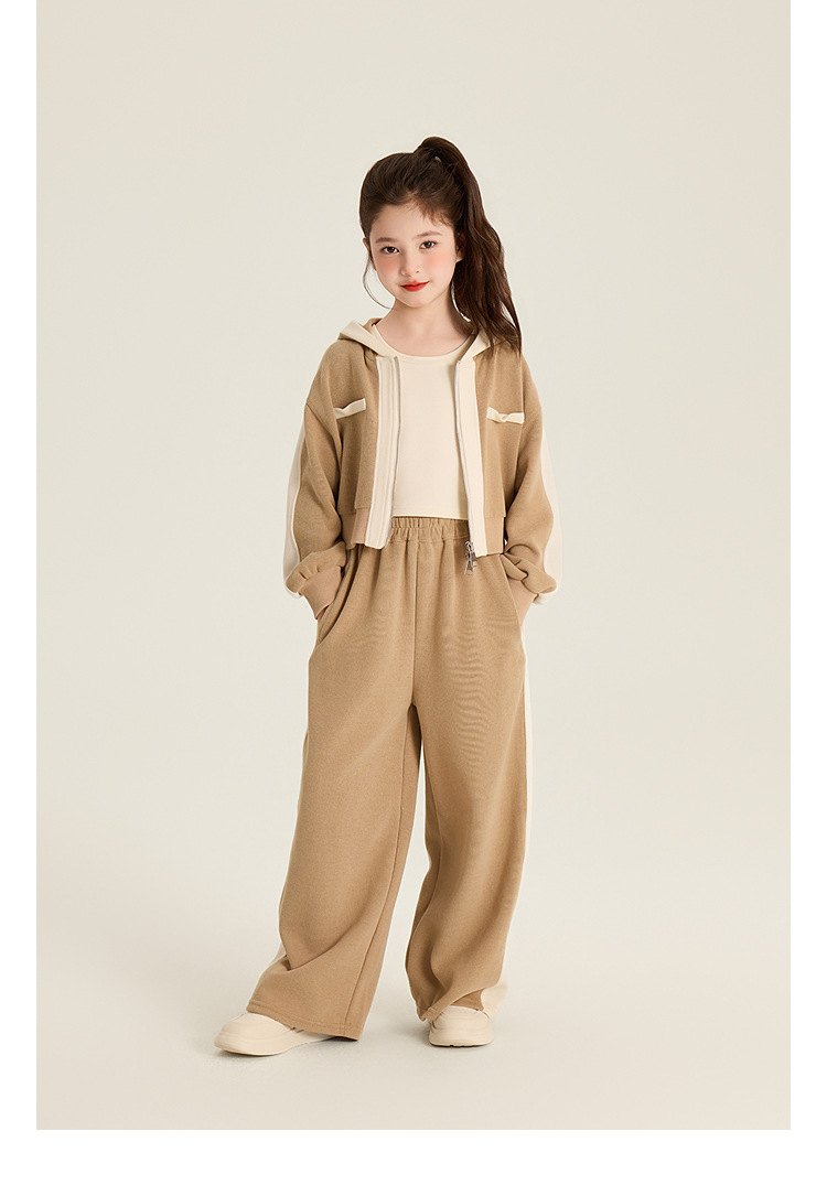 Amybaby 여아 정장 2025 봄 신작 패션 스플라이싱 대비 색상 캐주얼 후드 가디건 와이드 팬츠
