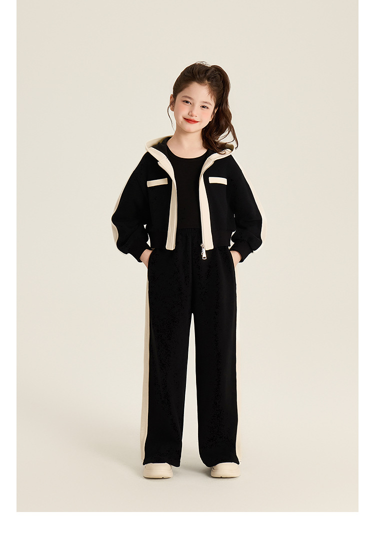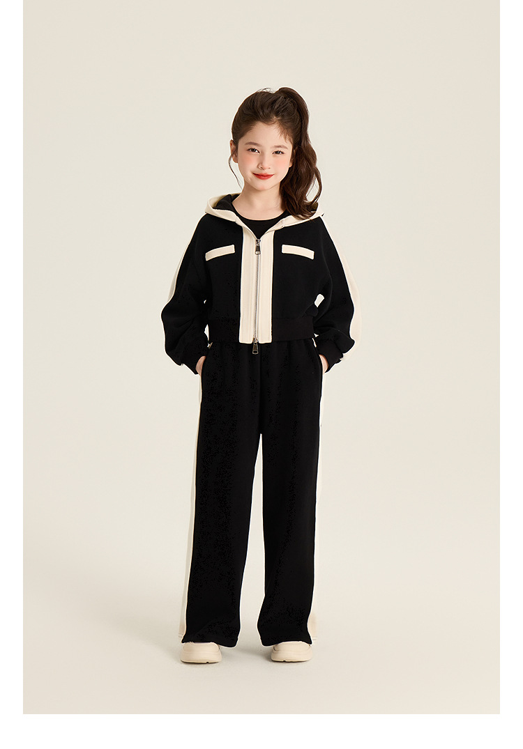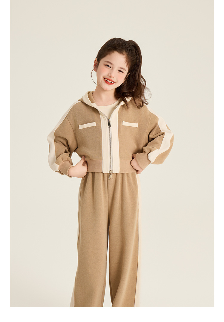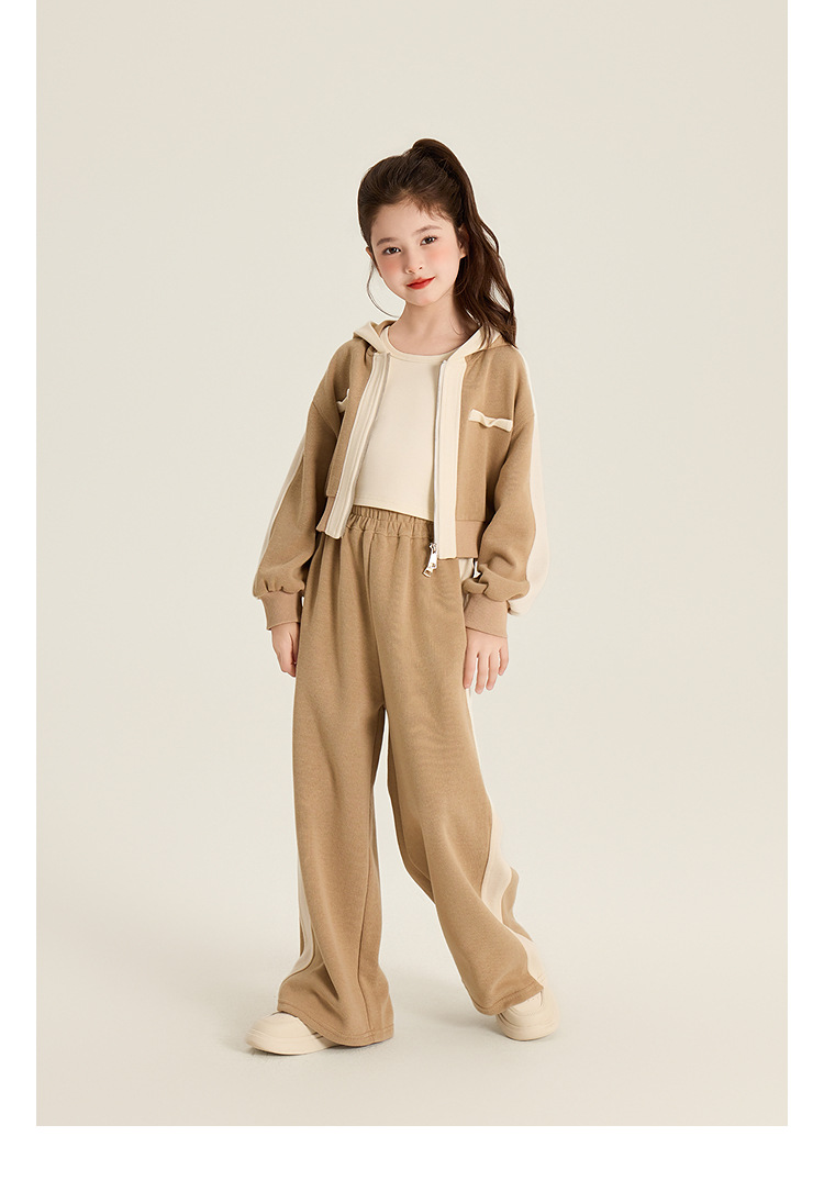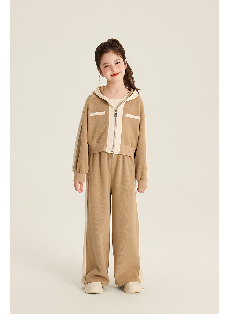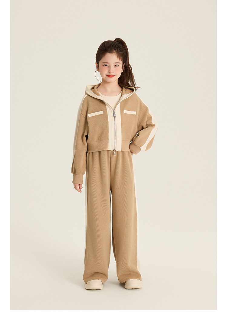 Amybaby 여아 정장 2025 봄 신작 패션 스플라이싱 대비 색상 캐주얼 후드 가디건 와이드 팬츠스토어 가기