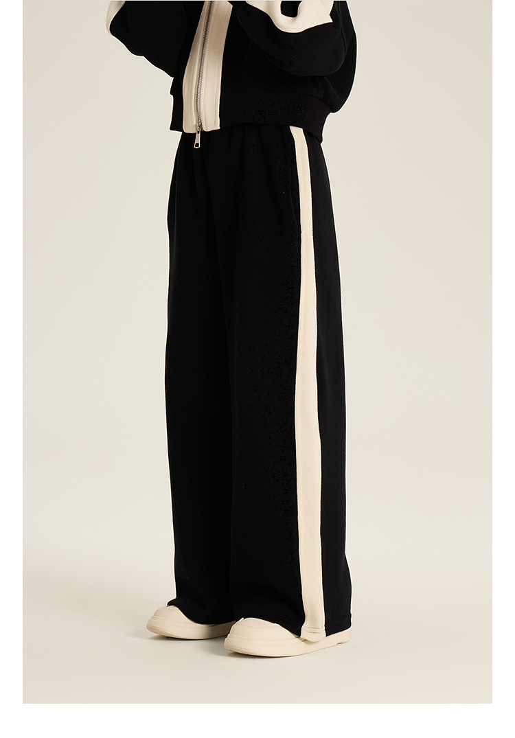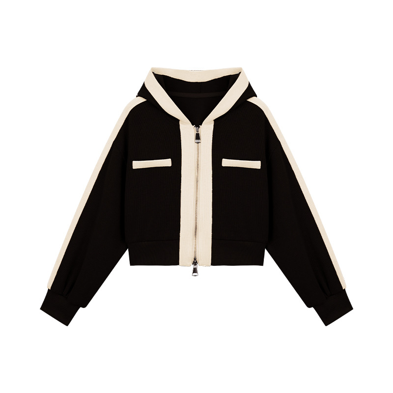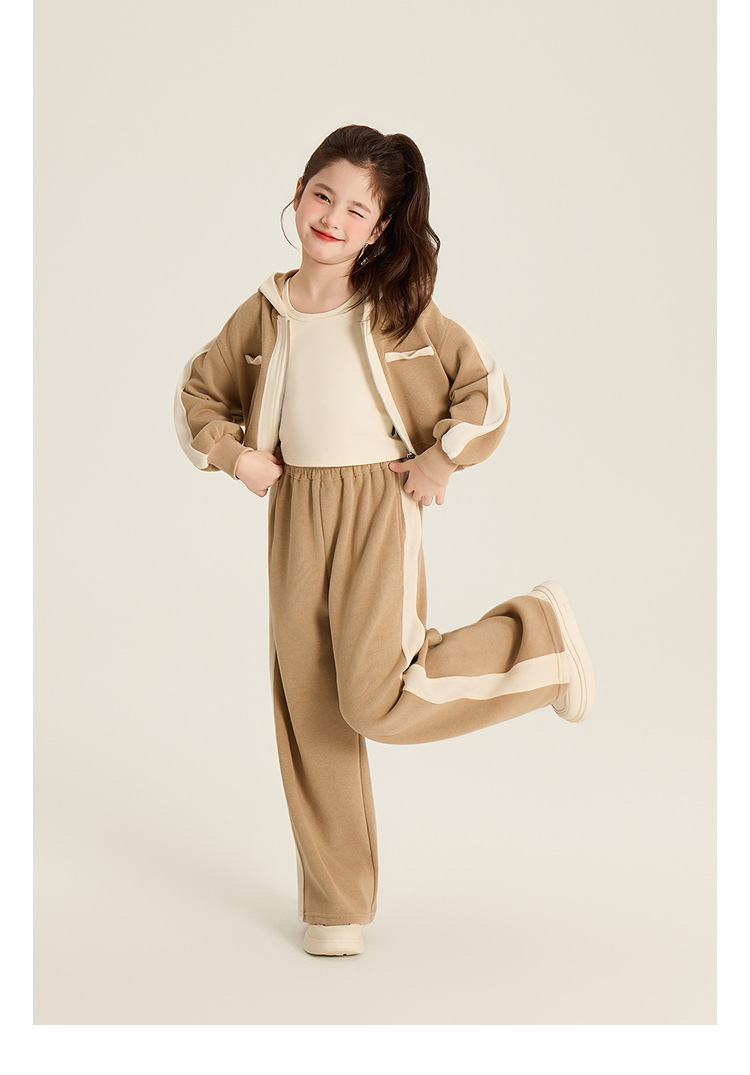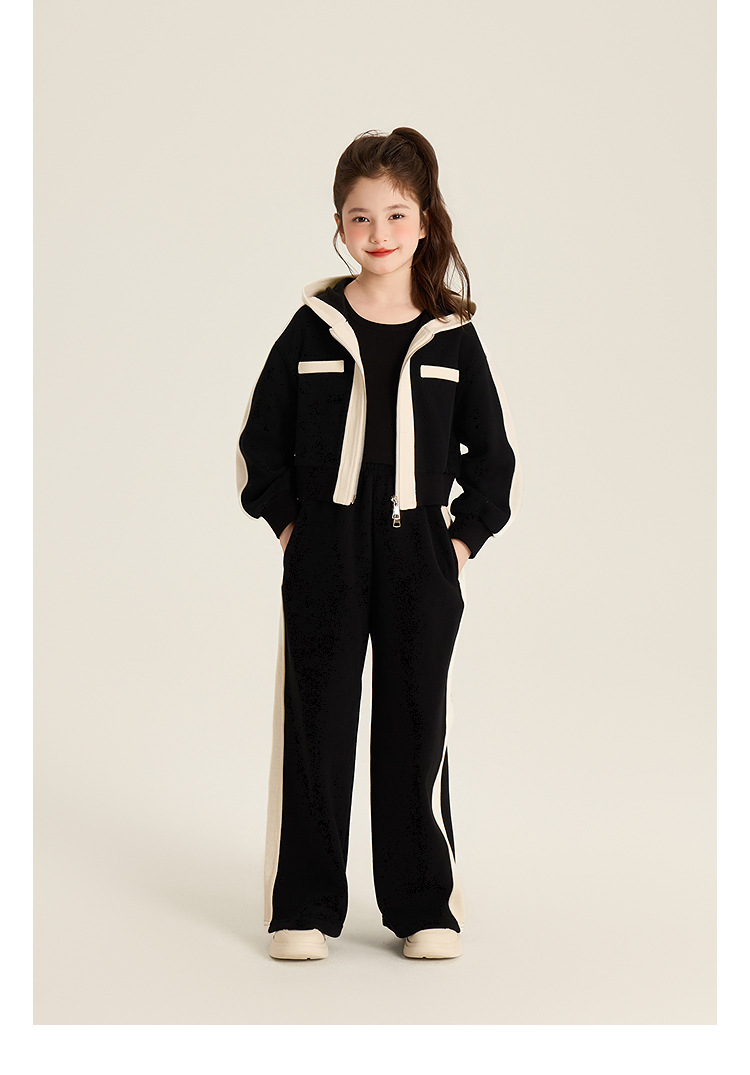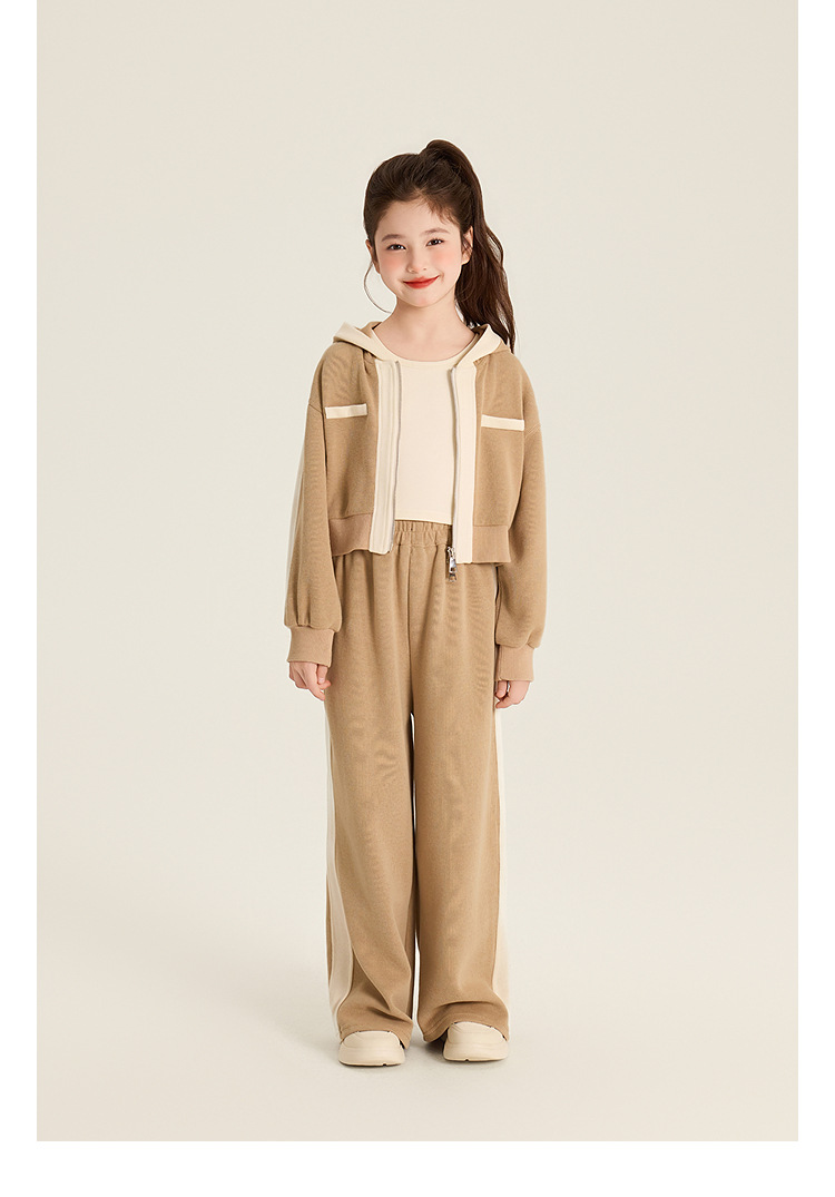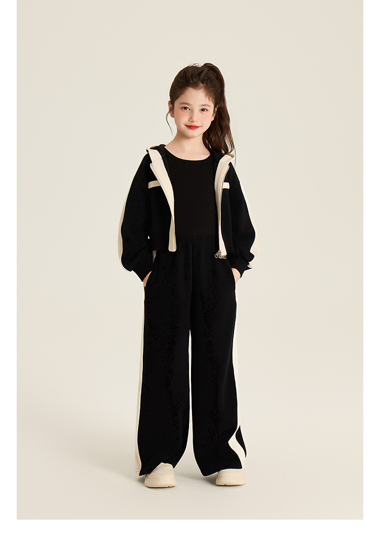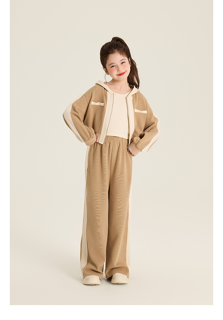 Amybaby 여아 정장 2025 봄 신작 패션 스플라이싱 대비 색상 캐주얼 후드 가디건 와이드 팬츠스토어 가기