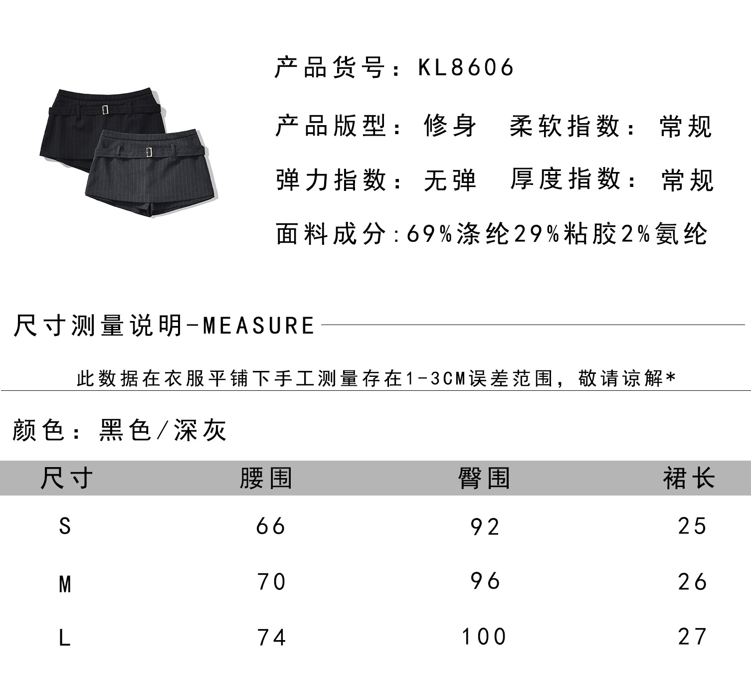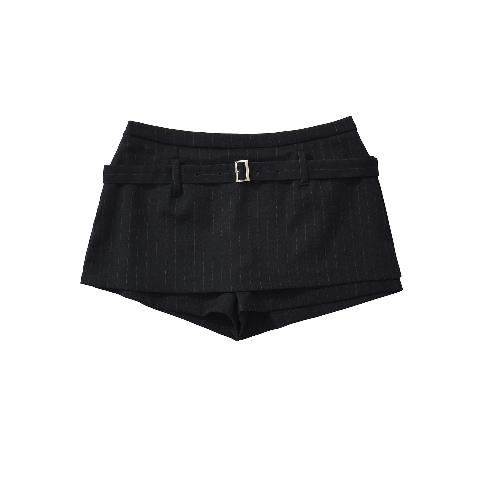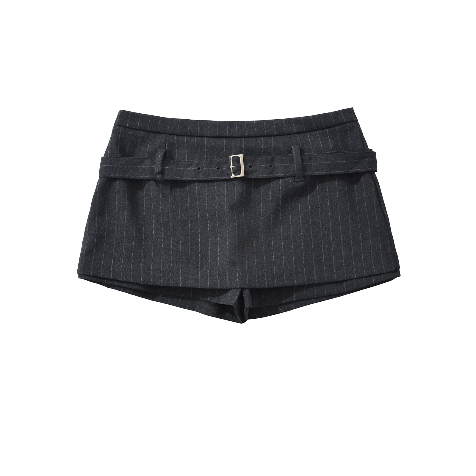 핫걸 퓨어 러스티 니치 페이크 투피스 스트라이프 스커트 팬츠 미니 스커트 노출 방지 벨트로 다리가 길어 보입니다.스토어 가기