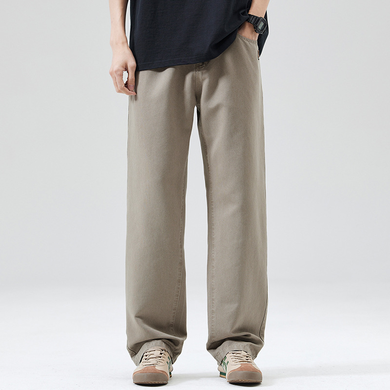 Muqiu 남성복 ∠ 여름 얇은 텐셀 Lyocell 세탁 캐주얼 바지 남성용 루즈 디퍼 스트레이트 와이드 레그 팬츠