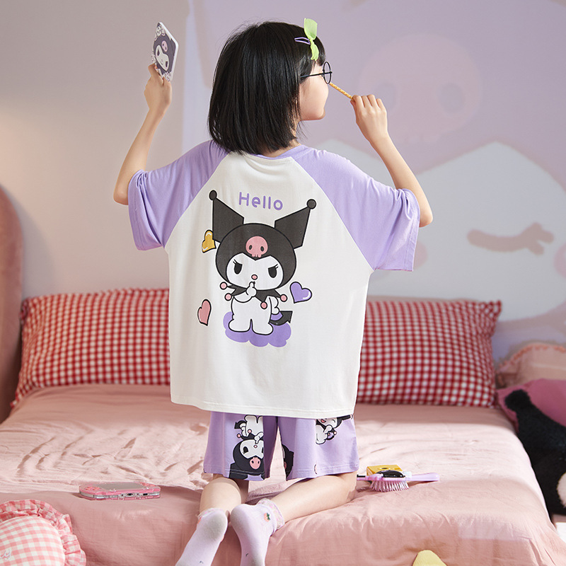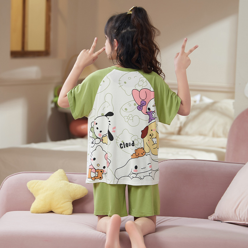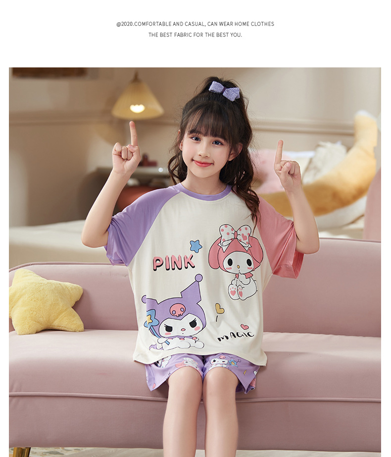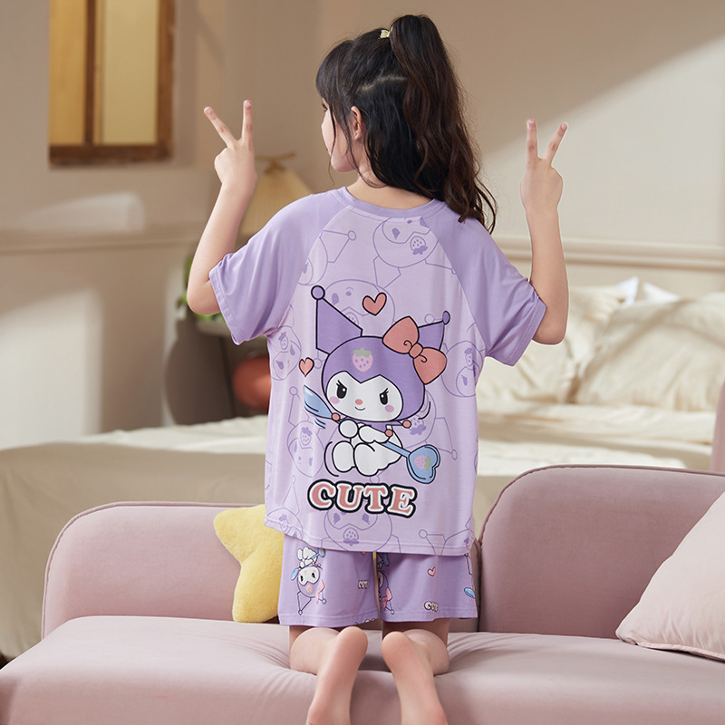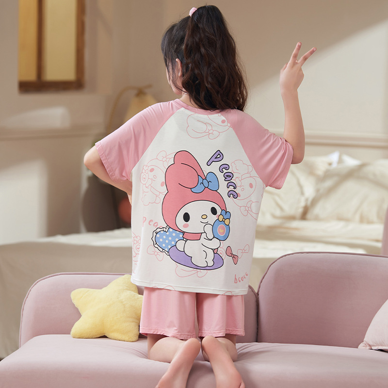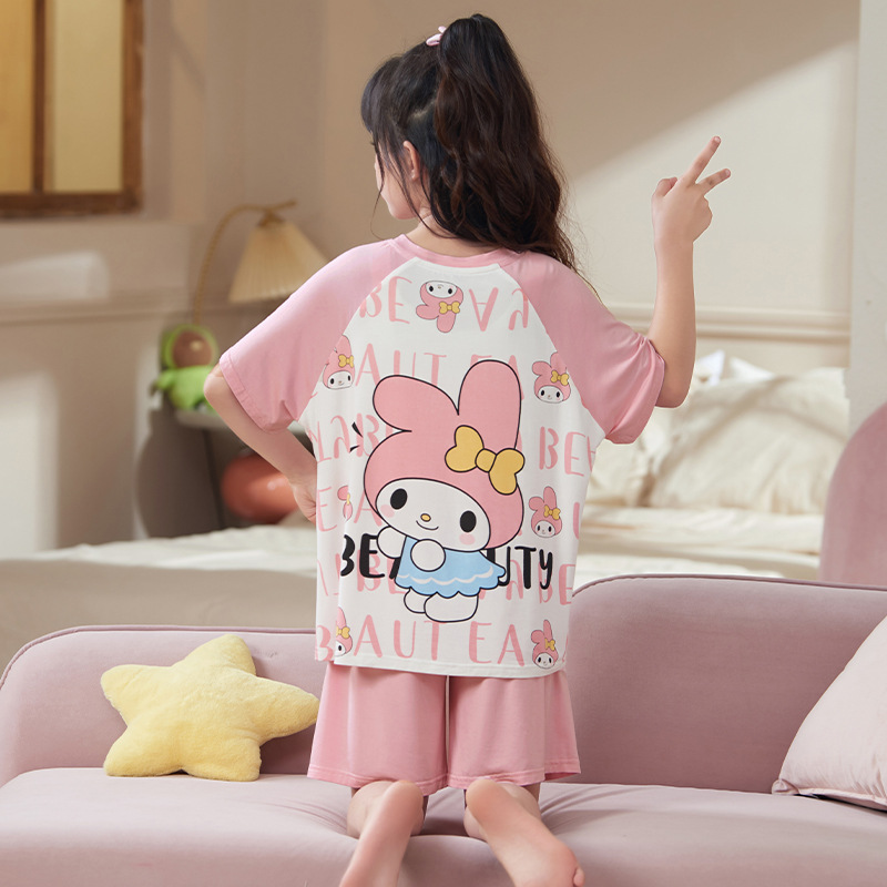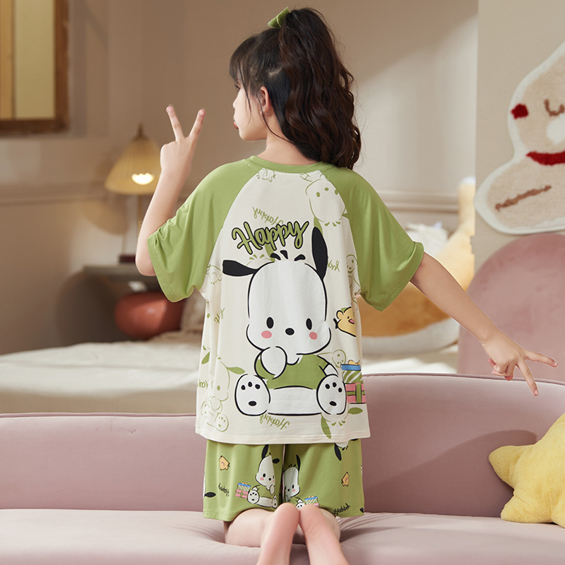 모달 소녀 잠옷 여름 2025 새로운 얇은 짧은 소매 어린이 만화 큰 아이 에어컨 홈 의류 세트