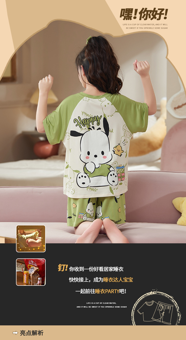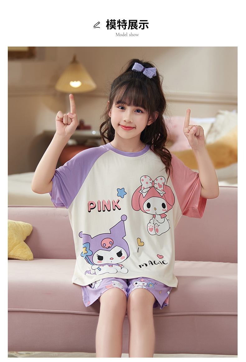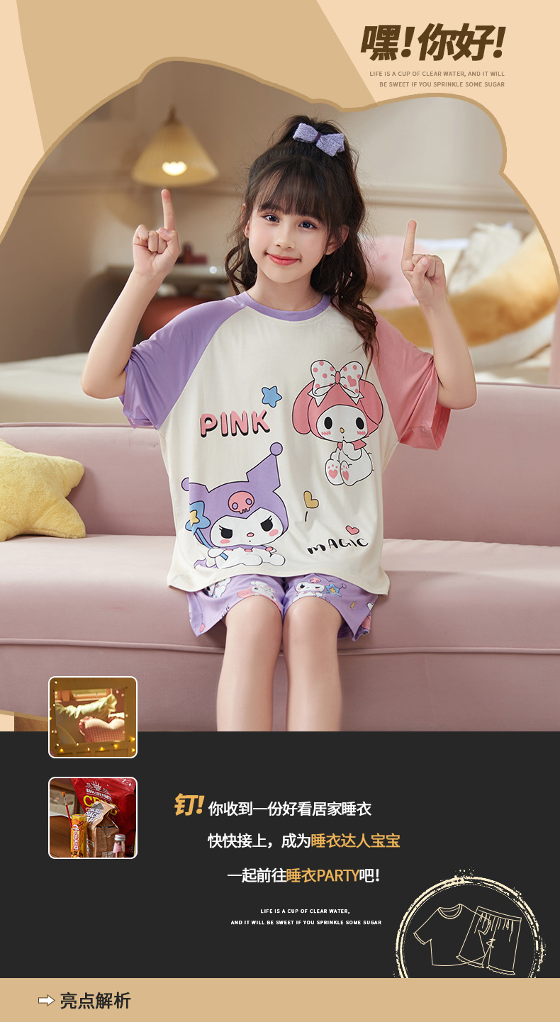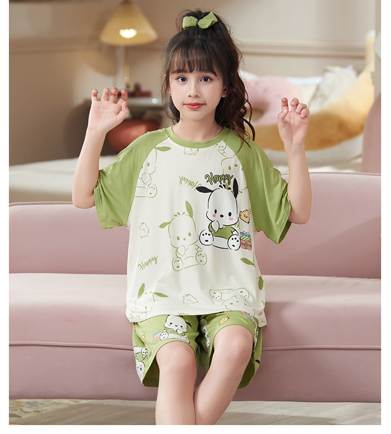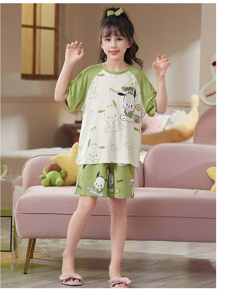 모달 소녀 잠옷 여름 2025 새로운 얇은 짧은 소매 어린이 만화 큰 아이 에어컨 홈 의류 세트스토어 가기
