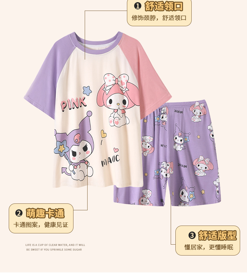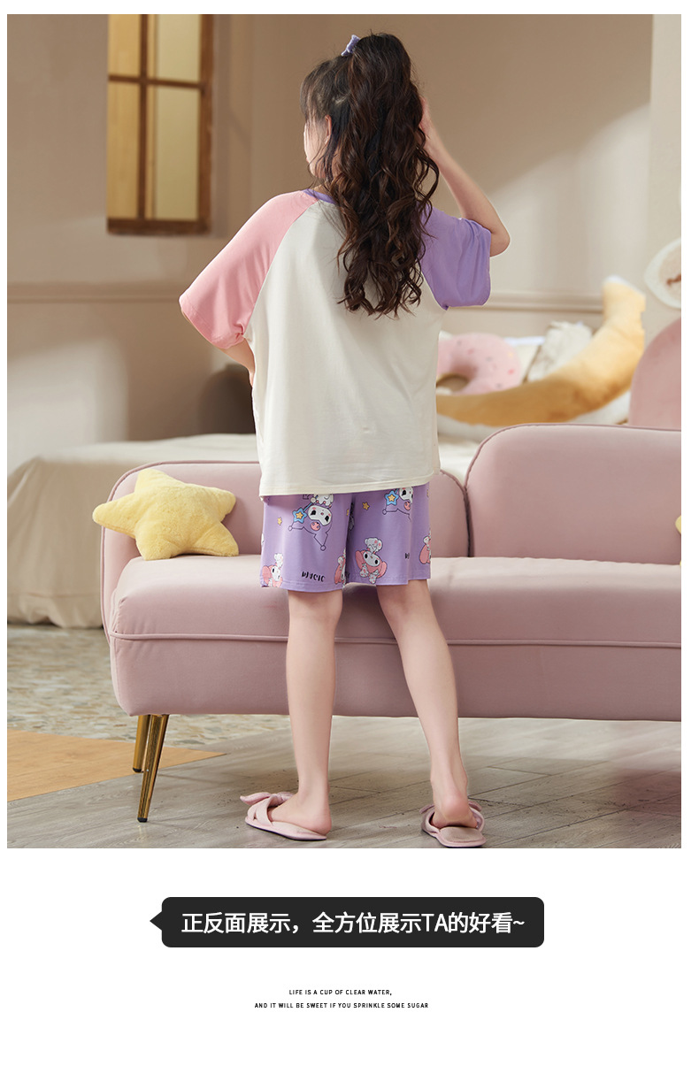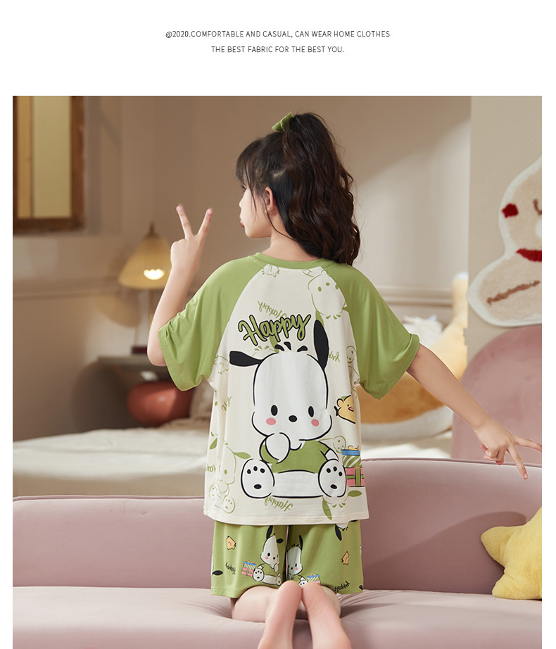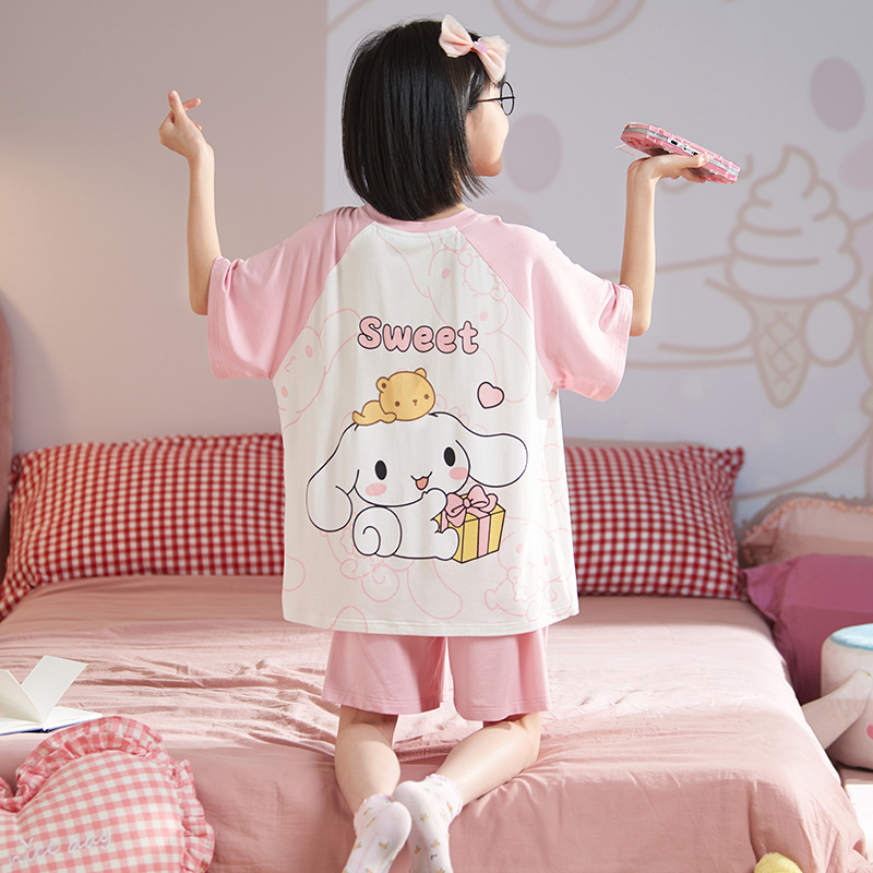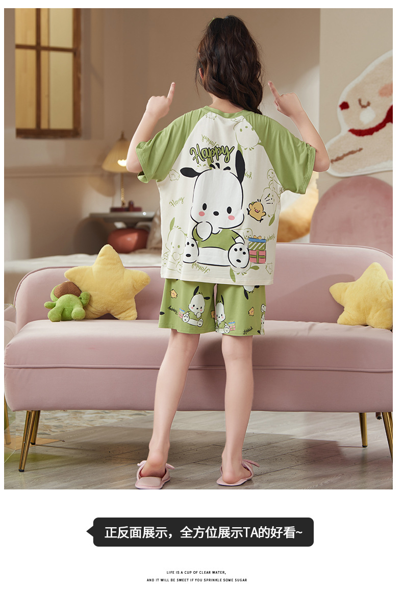 모달 소녀 잠옷 여름 2025 새로운 얇은 짧은 소매 어린이 만화 큰 아이 에어컨 홈 의류 세트스토어 가기
