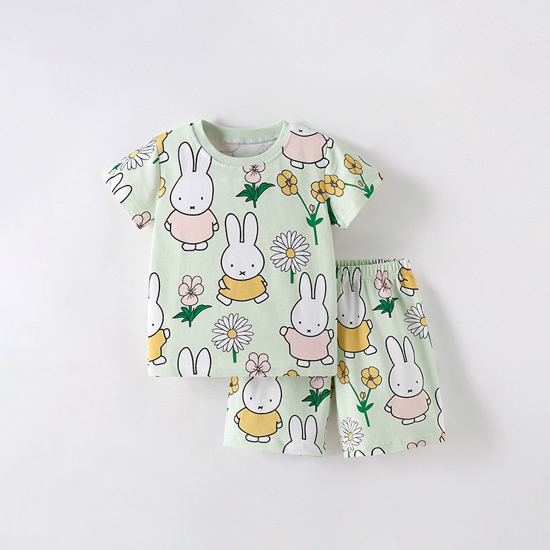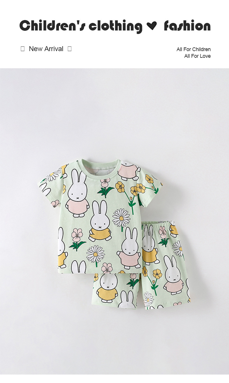 소녀 세트 여름 새 티셔츠 귀여운 어린 소녀 아동복 유럽과 미국 어린이 투피스 크루 넥 아동복