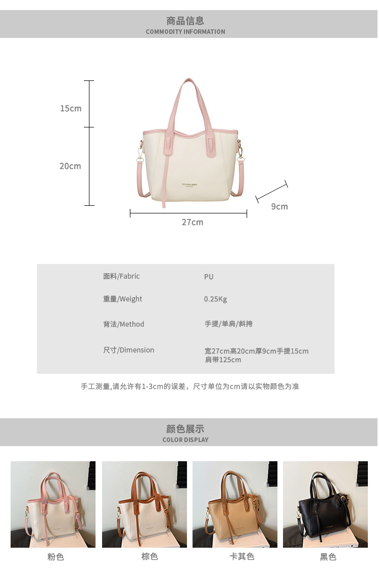 패션 컬러 클라인 대용량 모든 매치 워크 통근 토트 백 여성 맞춤형 틈새 캐주얼 웨스턴 스타일 크로스 바디 백