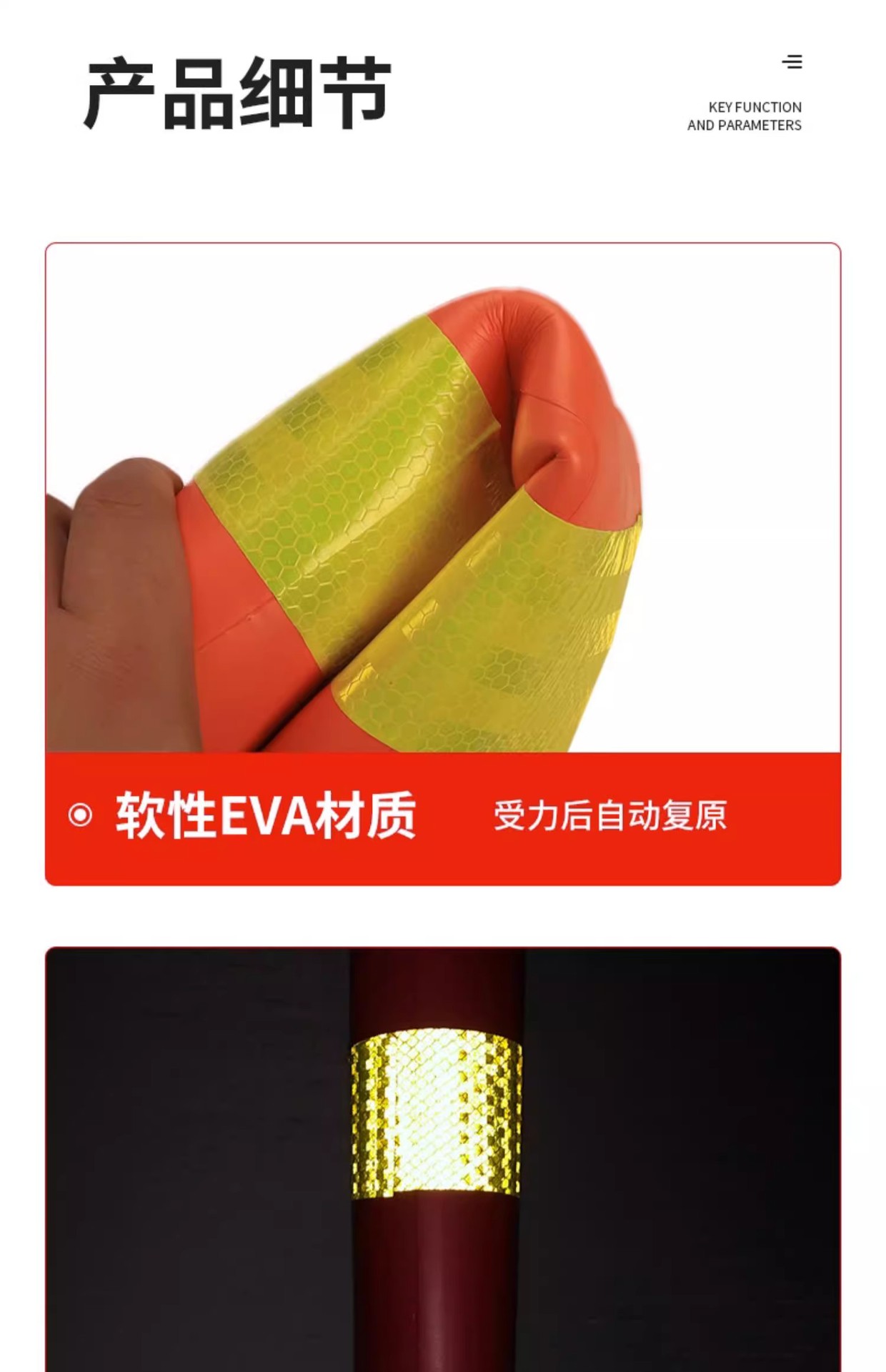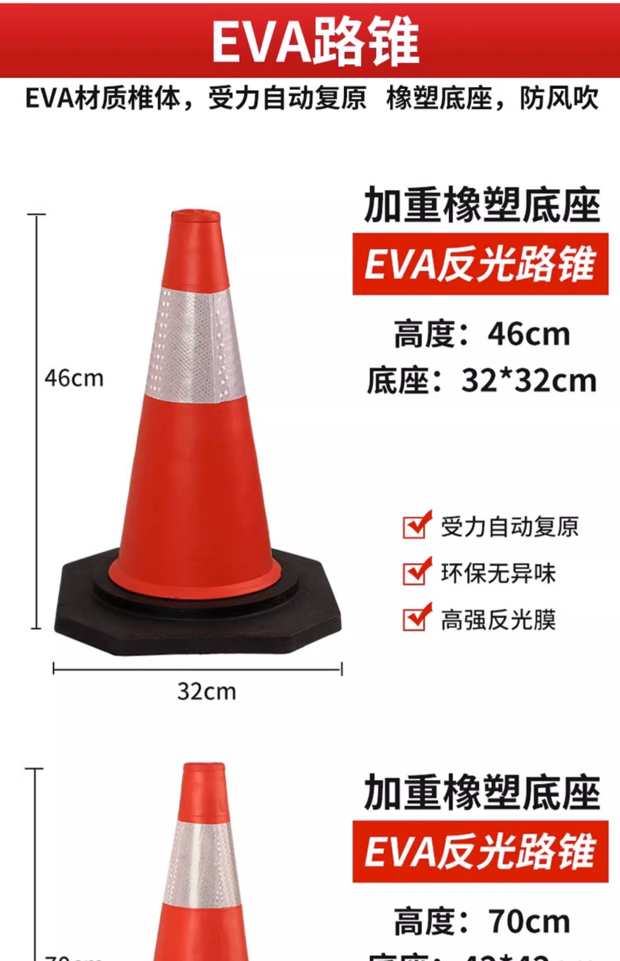 50EVA70 반사 도로 콘 경고 칼럼 EVA 도로 콘 반사 콘 스퀘어 콘 아이스크림 버킷 도로 플라스틱 경고 칼럼