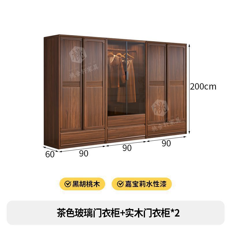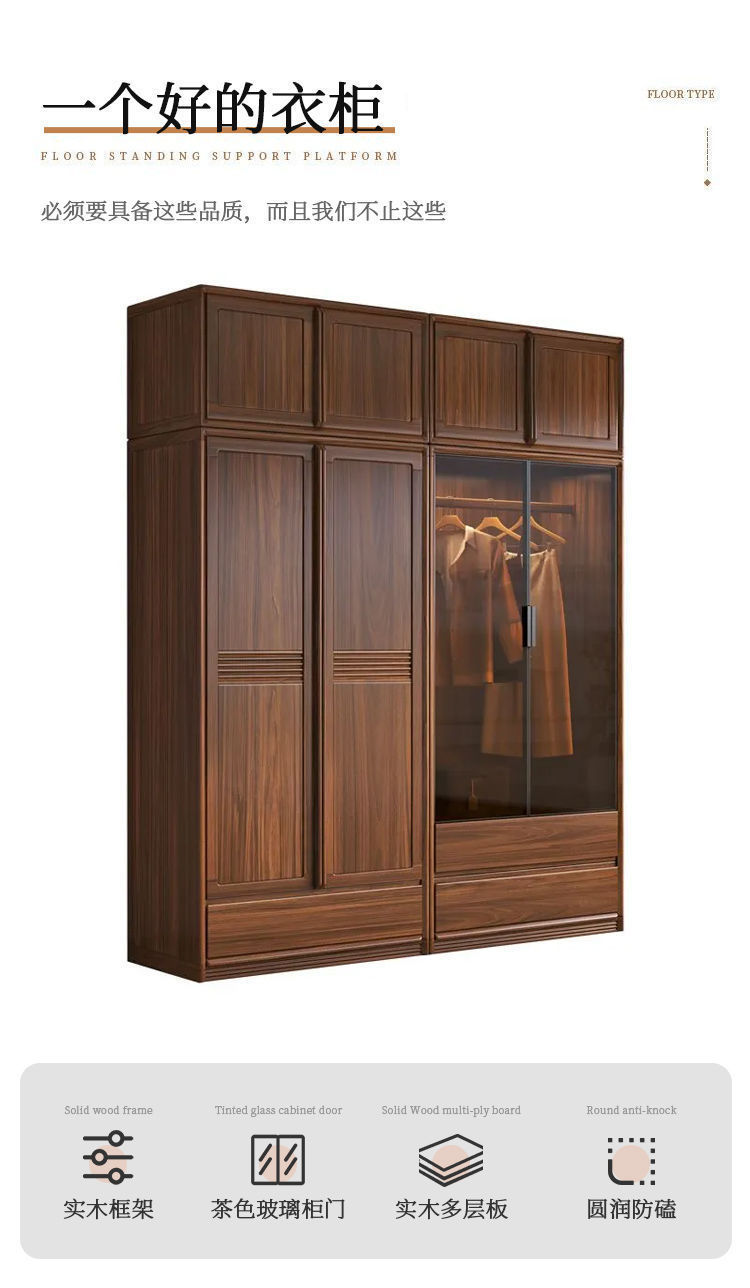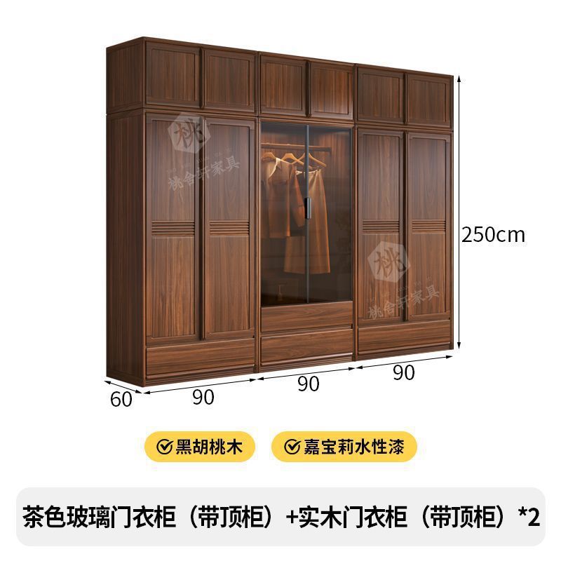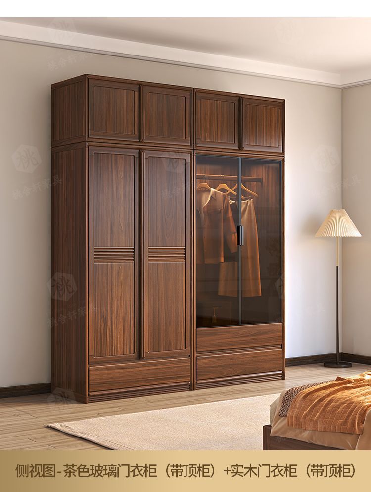 새로운 중국 스타일 검은 호두 옷장 단단한 나무 현대 간단한 최고 내각 가정용 침실 유리 보관 캐비닛 옷장