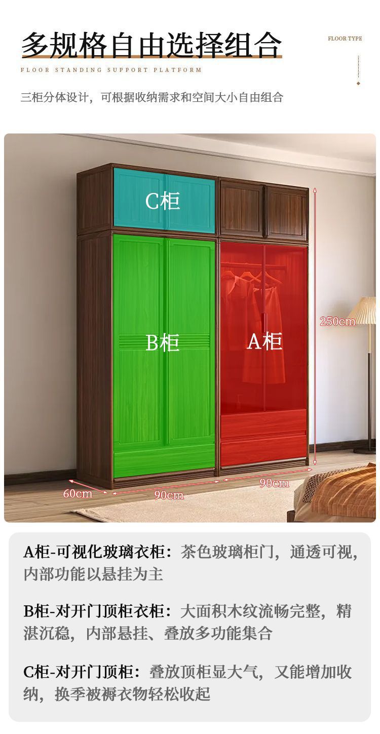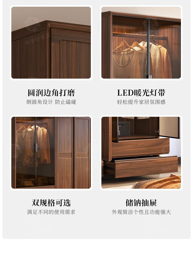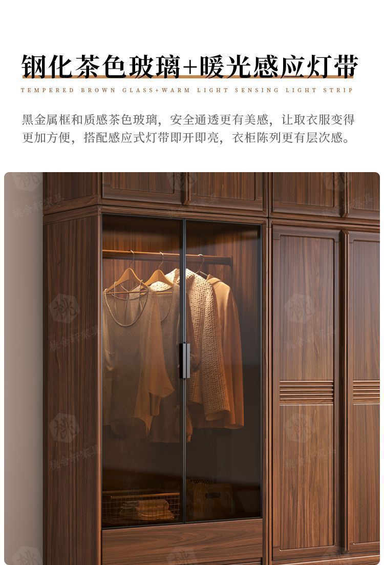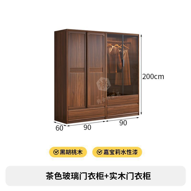 새로운 중국 스타일 검은 호두 옷장 단단한 나무 현대 간단한 최고 내각 가정용 침실 유리 보관 캐비닛 옷장