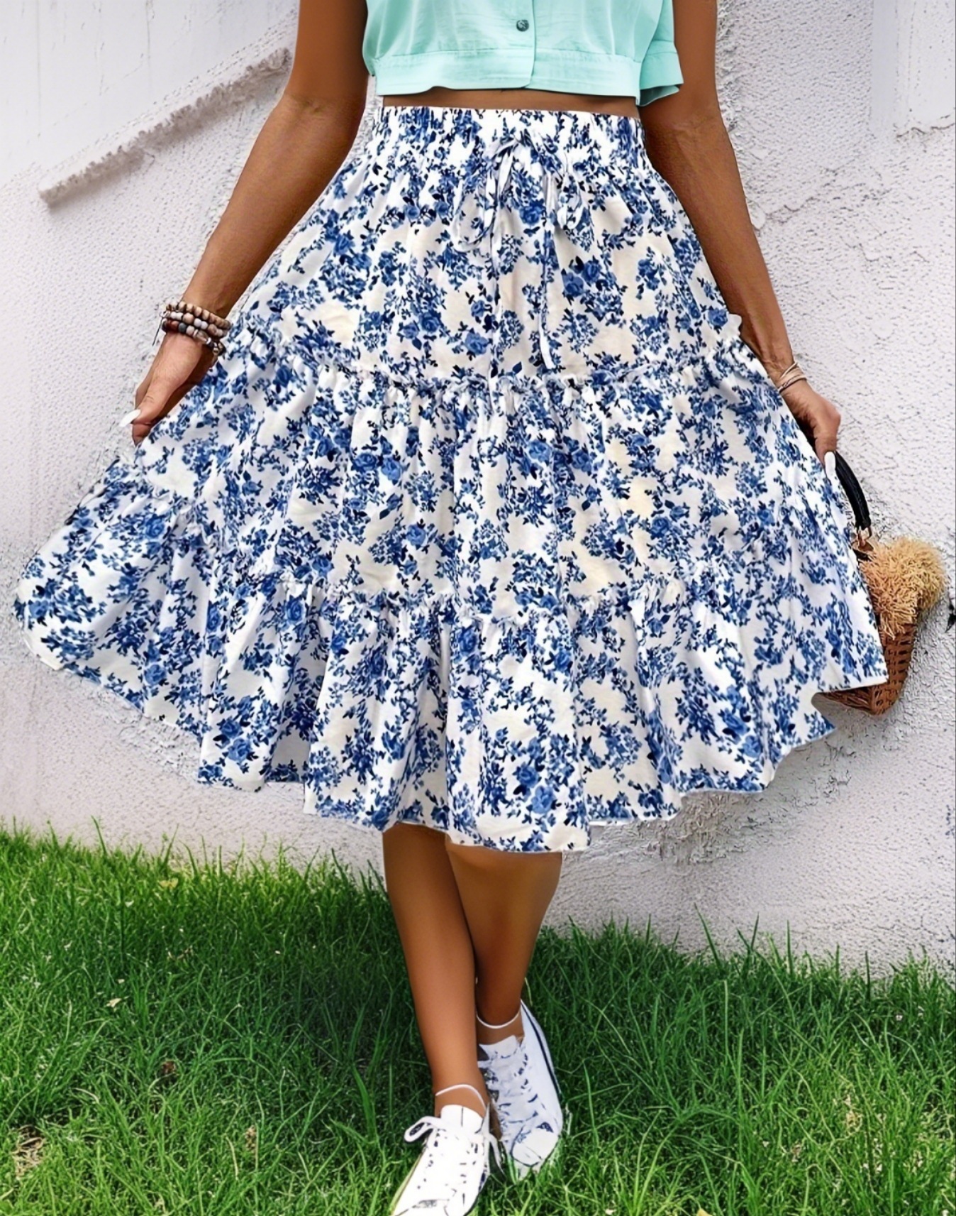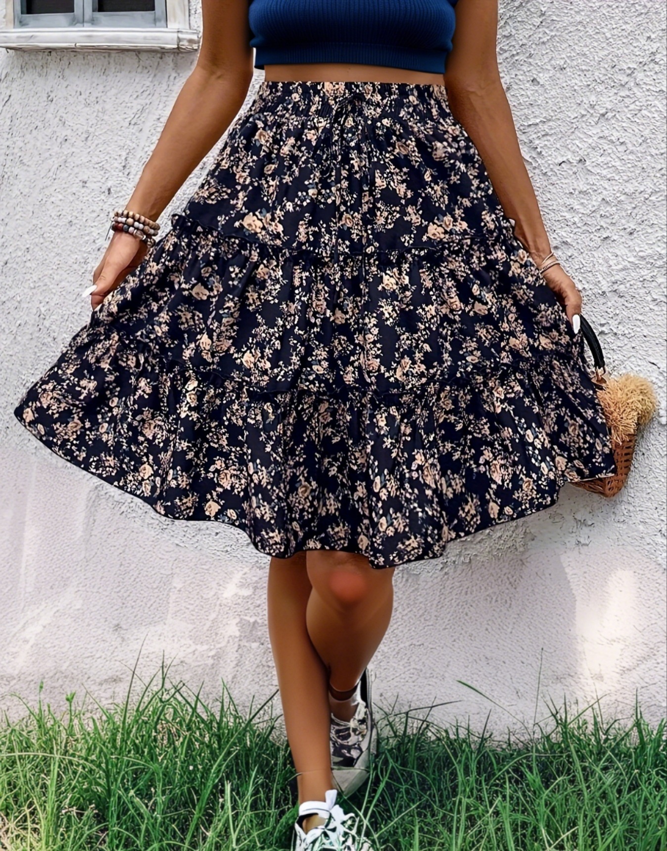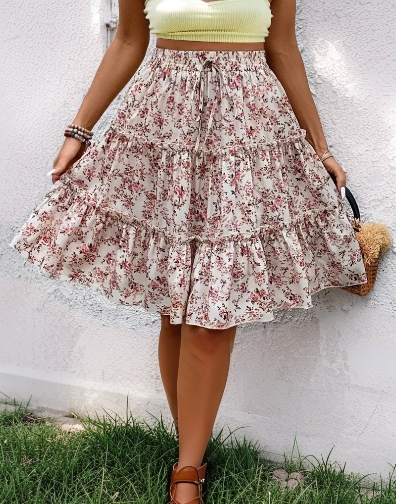 2025 유럽과 미국의 크로스보더 봄 여름 A라인 꽃무늬 고급 짧은 스커트 작은 꽃무늬 여성 다용도 미니 스커트스토어 가기